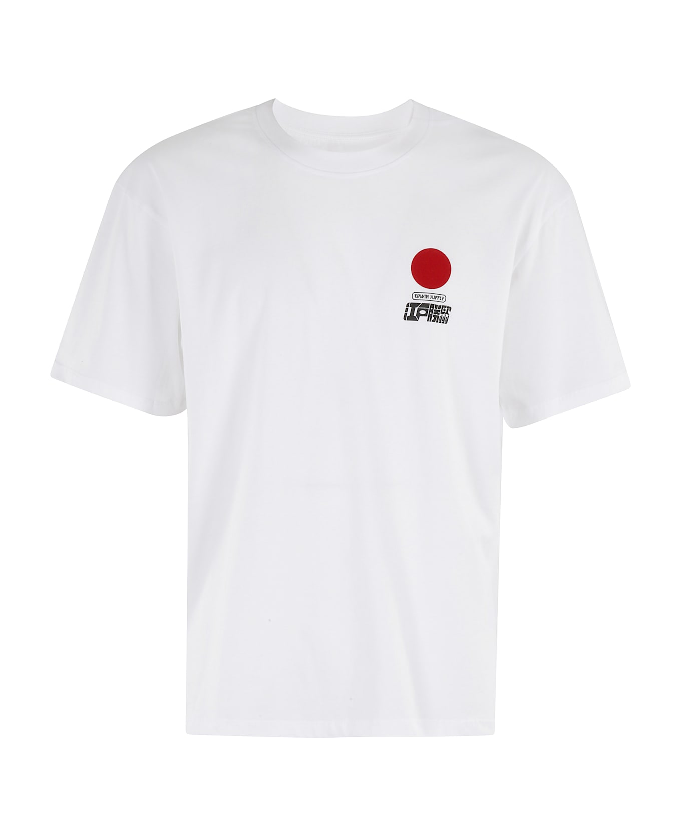 Sun T-Shirt - Edwin - White color - Ribbed crew neck - Short sleeve - Velvet logo on chest with contrasting print - Boxy fit