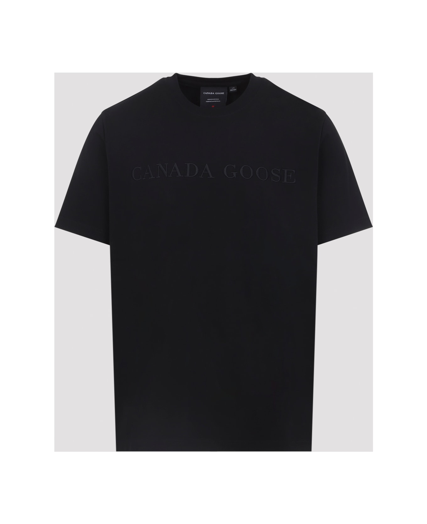 Canada Goose Black Cotton T-Shirt. Pure black cotton t-shirt, round neck, chest tonal embroidered lettering logo, short sleeves, straight hem.