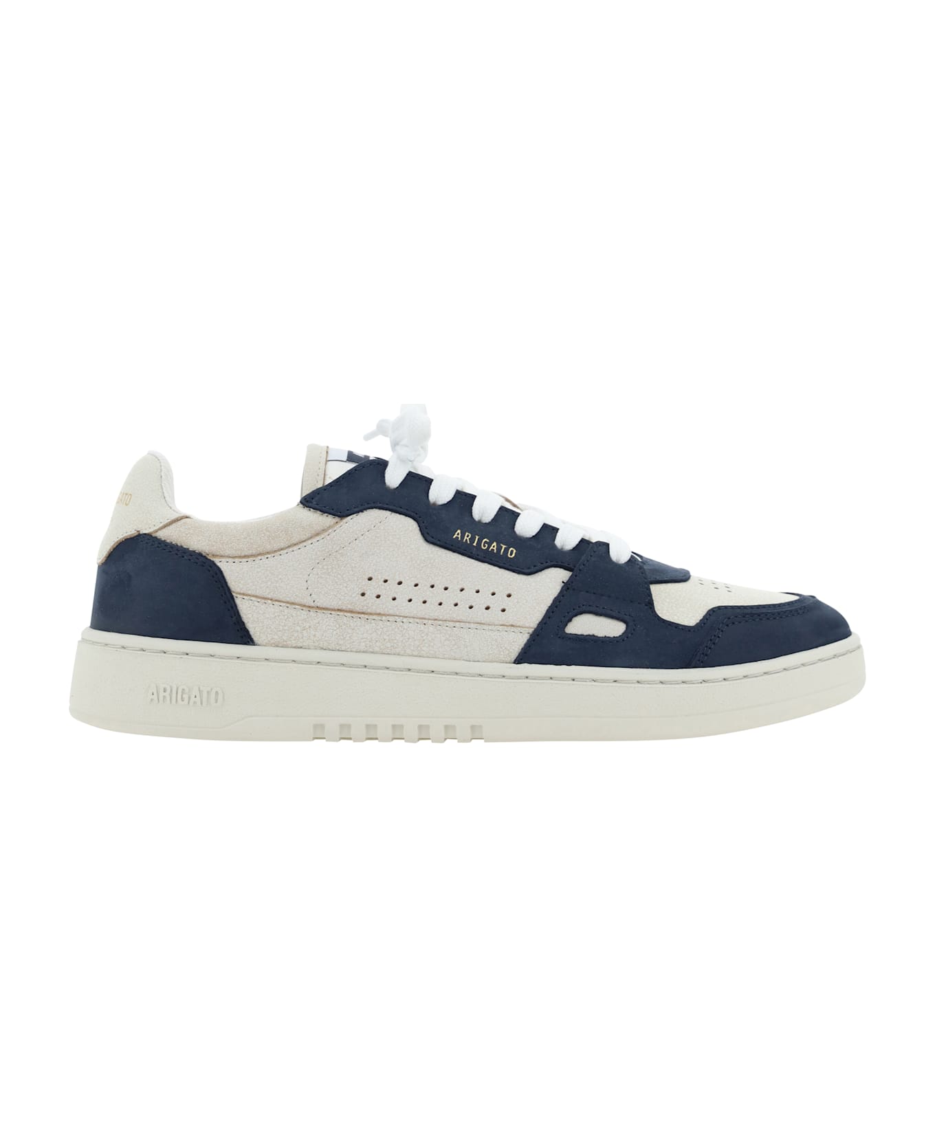 Axel arigato's dicelo leather sneakers feature a modern design with attention to detail: front lace-up closure, flat sole and perforated round toe. suede details, a logo-embossed press stud insole and embroidered patch on the tongue with the iconic contrasting monogram add a touch of style, complemented by the brand's distinctive signature on the outer panel.