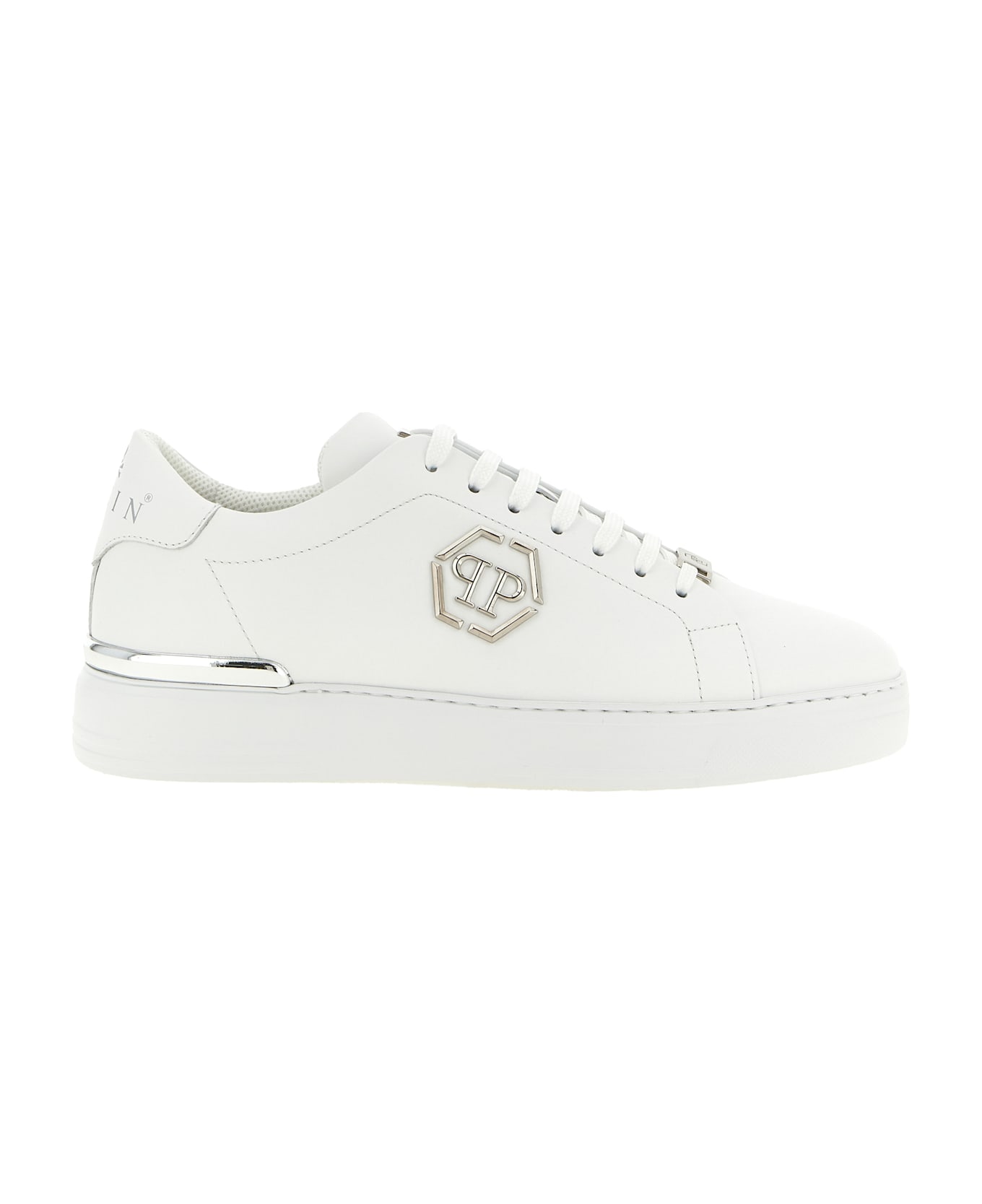 'Hexagon' leather sneakers with lace-up closure, contrasting coconut-print leather heel, side logo patch, back metal plaque. Composition: 100% calfskin leather (Bos Taurus)