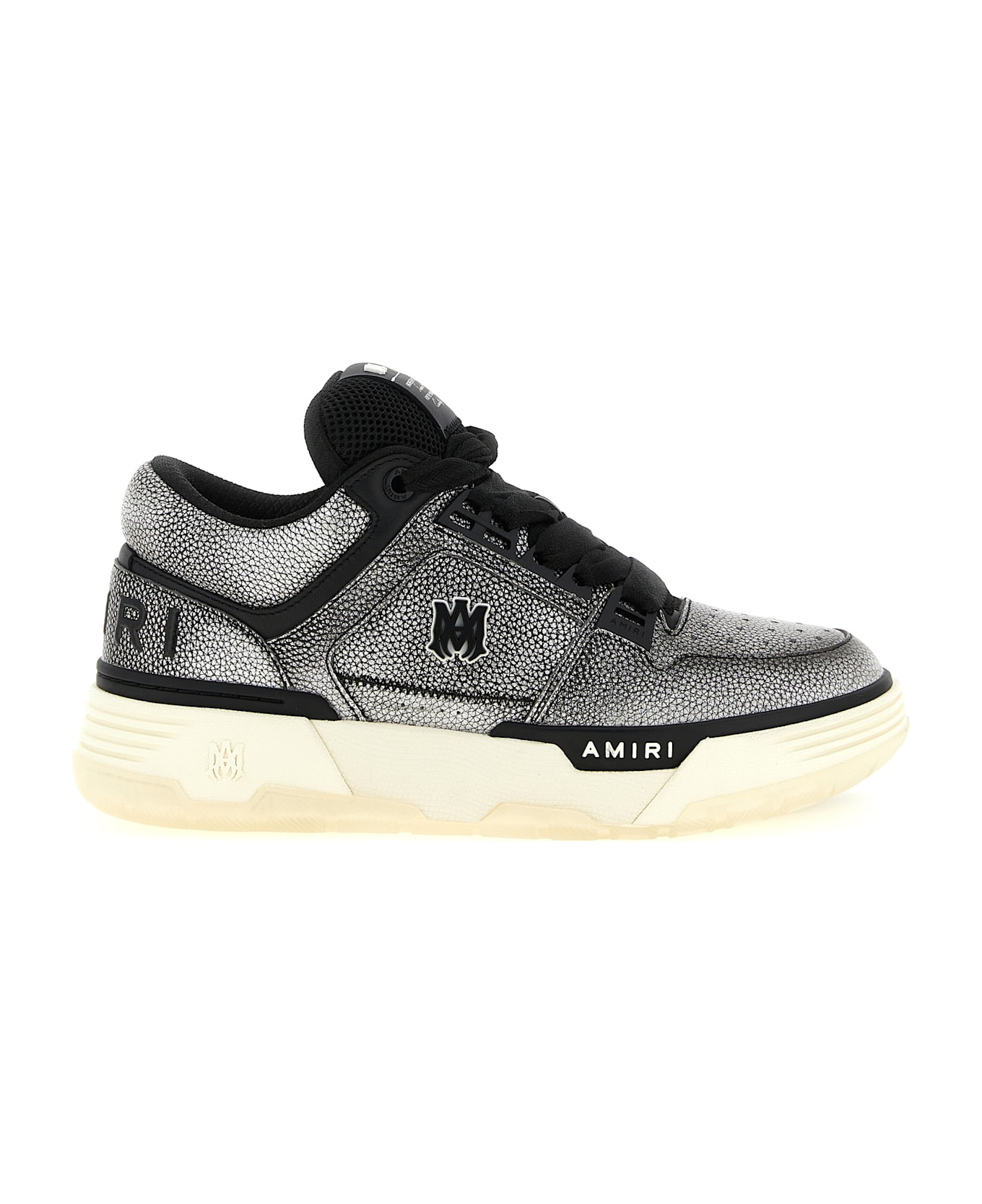 'Pebbled MA-1' hand-painted hammered leather sneakers with perforated toe, padded collar and tongue, 3D plastic 'MA' logo on the side, embossed lettering logo on the heel, lace-up closure, oversized rubber sole. Each piece is crafted with meticulous care and is inherently unique. The slight variations in the artwork are the natural result of the printing process and contribute to the distinctive character of this product.