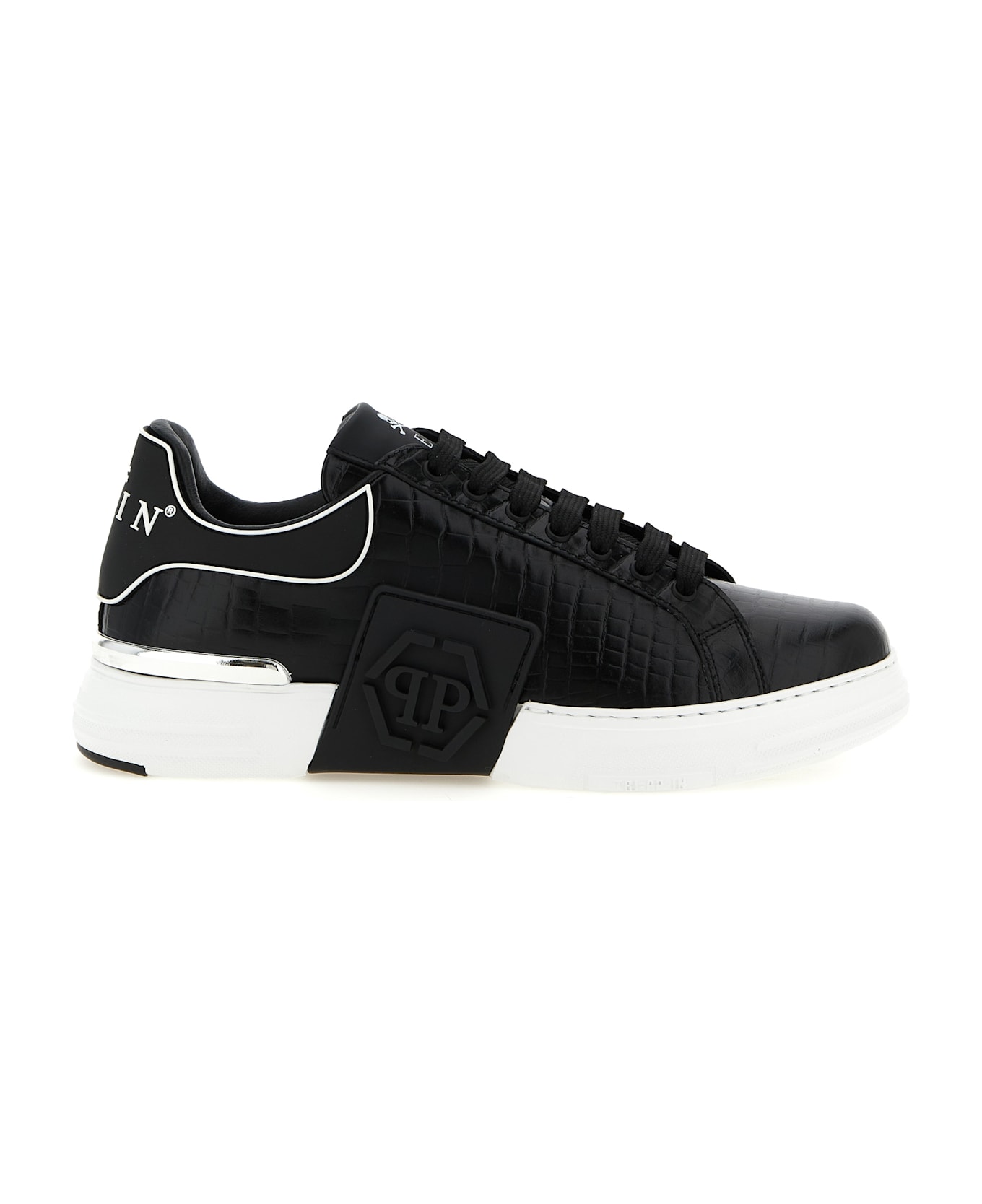 'Phantom Kick$ Cocco' sneakers in premium crocodile-effect print leather, 3D silicone logo details on the side and heel, lace-up closure, cushioned insole, rubber sole.