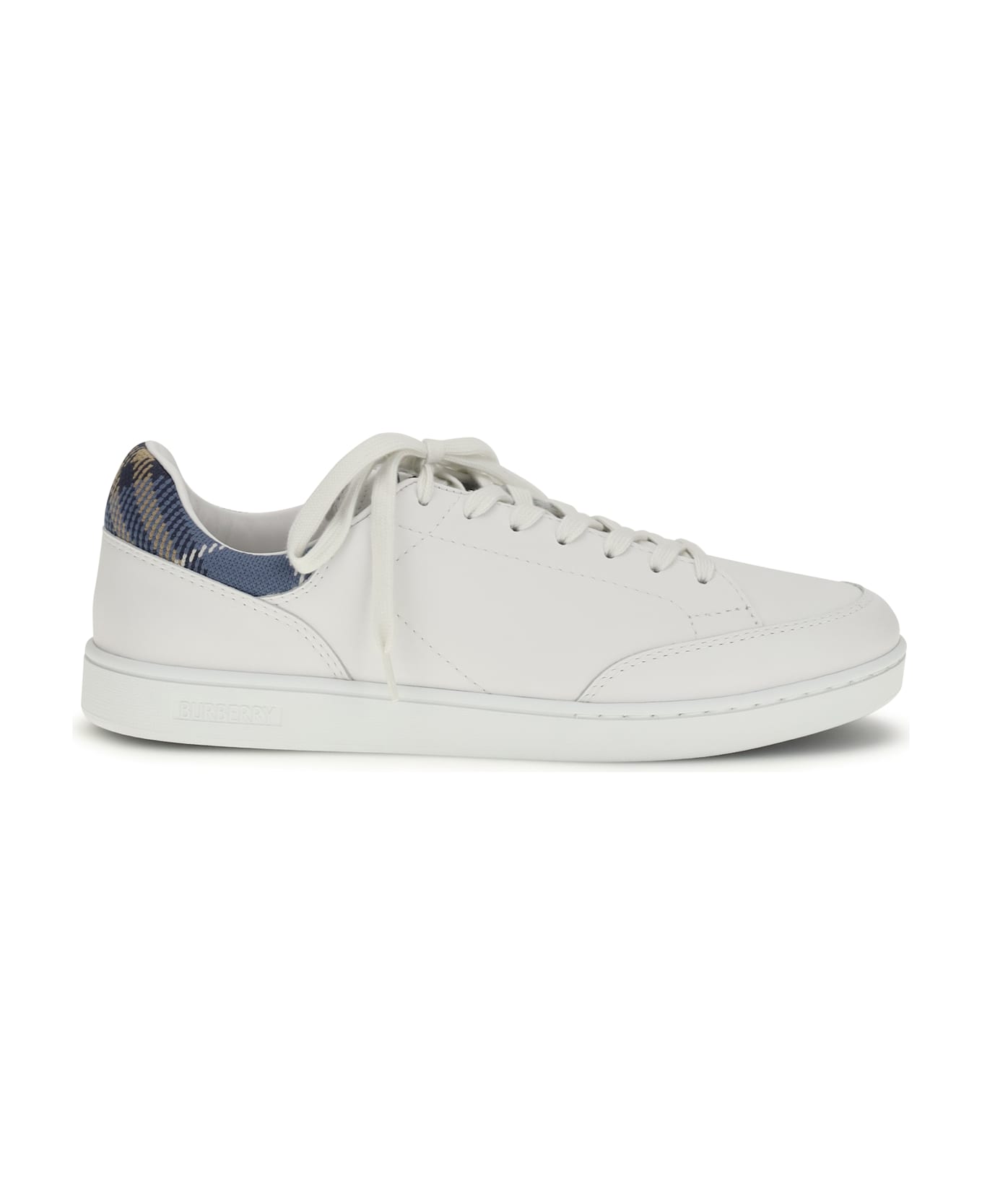 The set leather sneakers by burberry combine elegance and contemporary style, with a round toe and lace-up closure for a comfortable fit. the iconic check print heel panel adds a distinctive touch, enhancing the refined and recognizable design of the model.