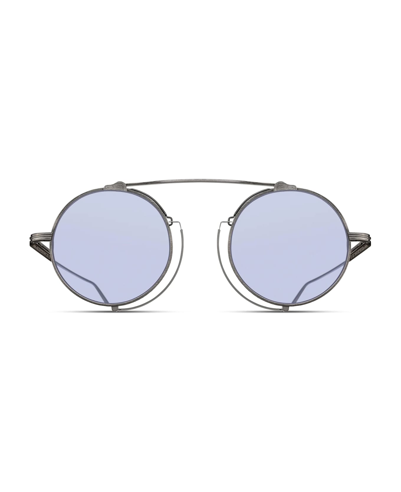 Brand: Matsuda Model: M3154 - Antique Silver / Cafe Blue SKU: M3154. Sg. As. 46 Type: Sunglasses Color: Silver Material: Titanium Lens color: Light Blue Size: 46mm-24mm-145mm Made in Japan