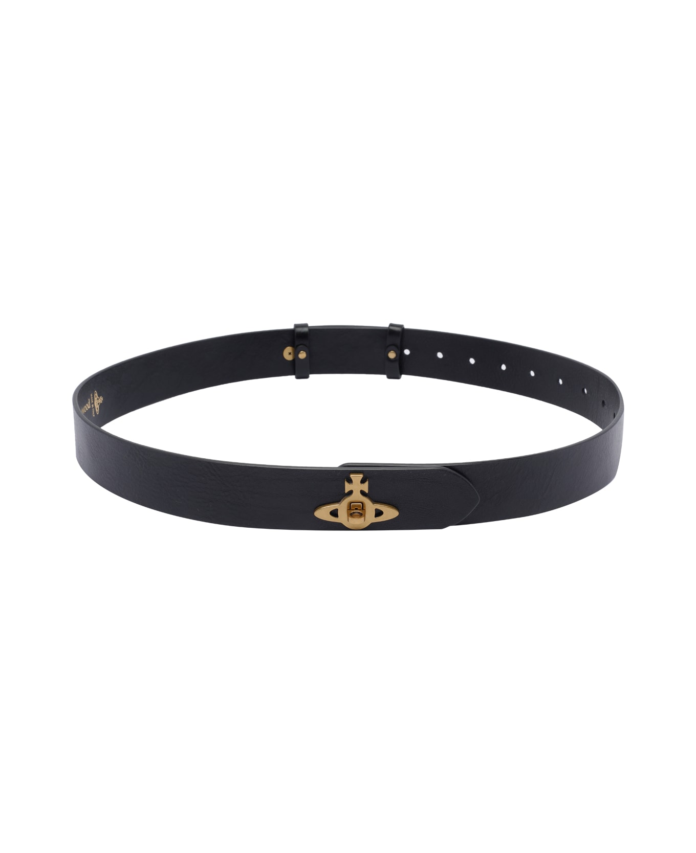 Vivienne Westwood black Orb logo belt, logo on the front Composition: 100% Calf Leather