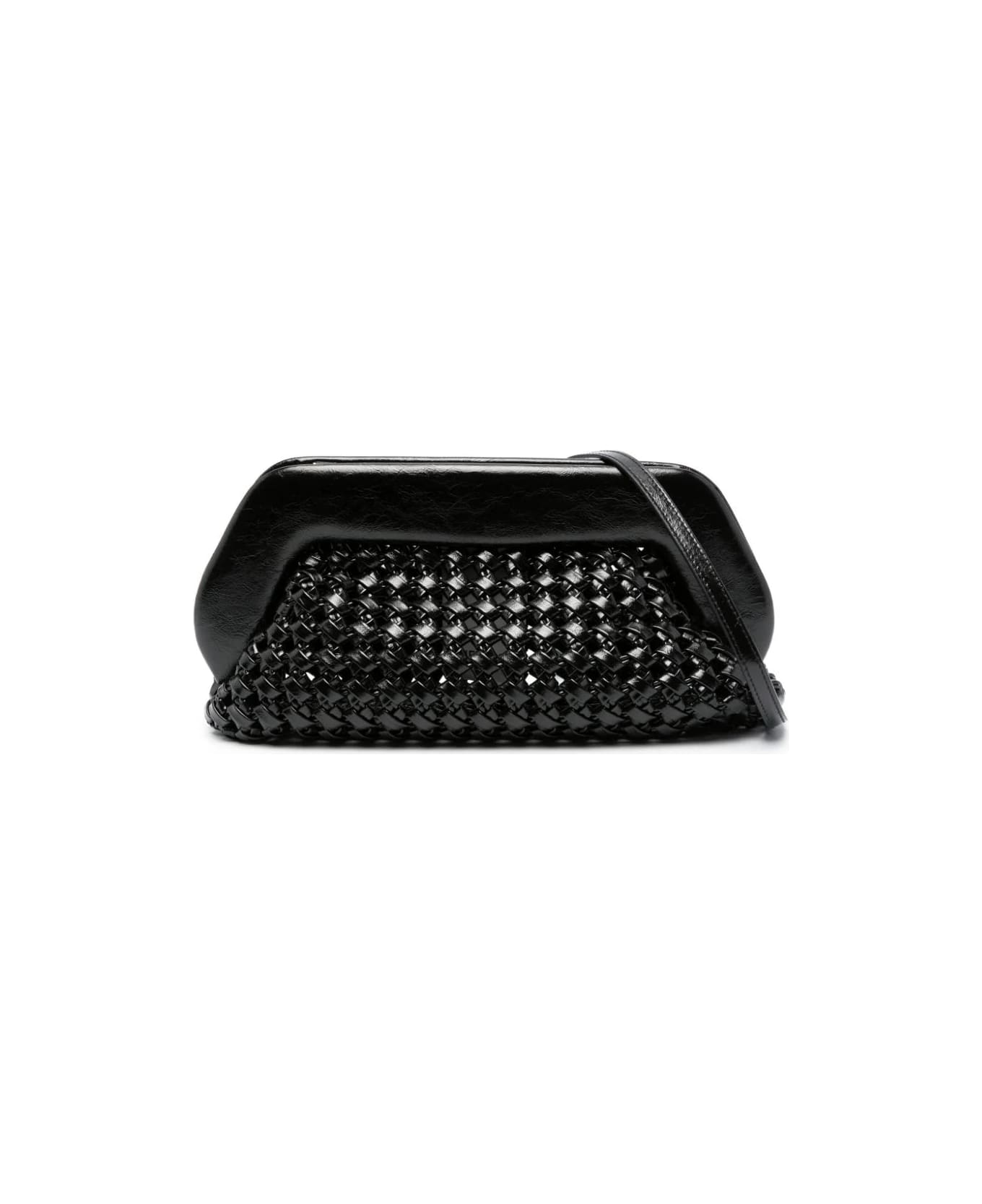 Bios Knots Shiny clutch bag by THEMOIR ade of black woven vegan leather. Unlined model with a soft design characterised by a single internal compartment, upper magnetic closure and removable shoulder strap to wear the bag on the shoulder or crossbody. The brand's mission is to create products with the lowest possible environmental, ethical and eco-friendly impact. In fact, even the labels on the bags are made from recycled paper.