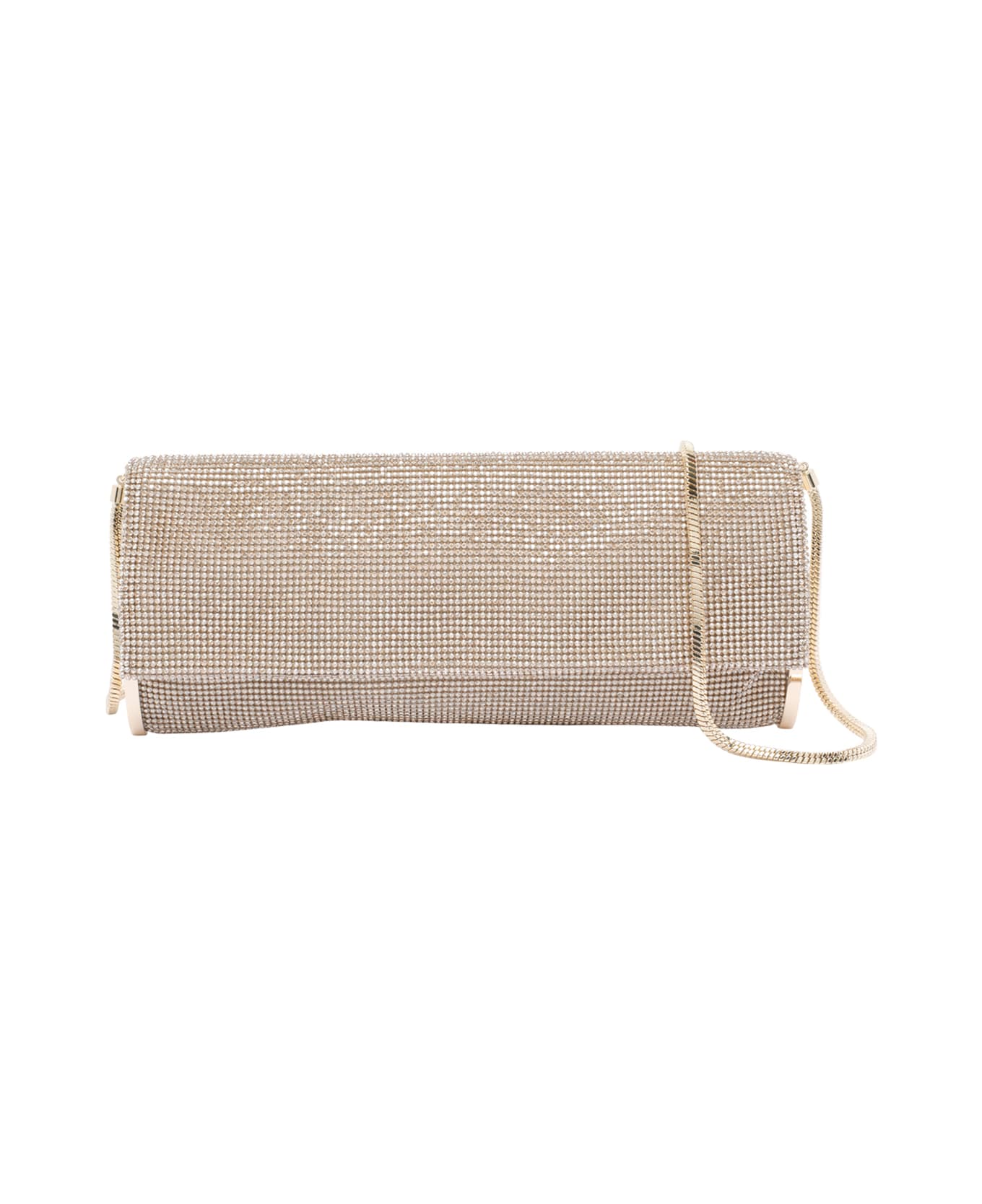 Bendetta Bruzziches gold Kate crystals crossbody bag, magnetic closure, one flat pocket and 2 slots, removable shoulder strap Composition: 100% Silk, 100% Strass