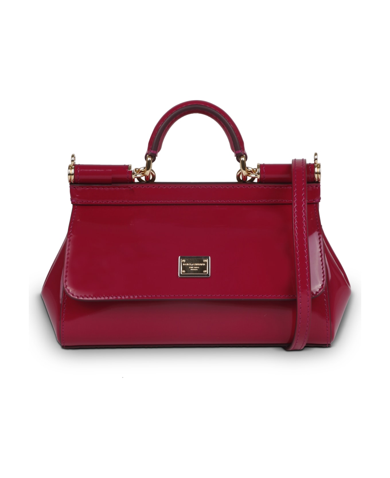 'Sicily' small shoulder bag in shiny calfskin, single round handle, front flap with logo plaque, magnetic button closure, metal feet, adjustable and removable shoulder strap, by Dolce & Gabbana Composition: 100% Leather