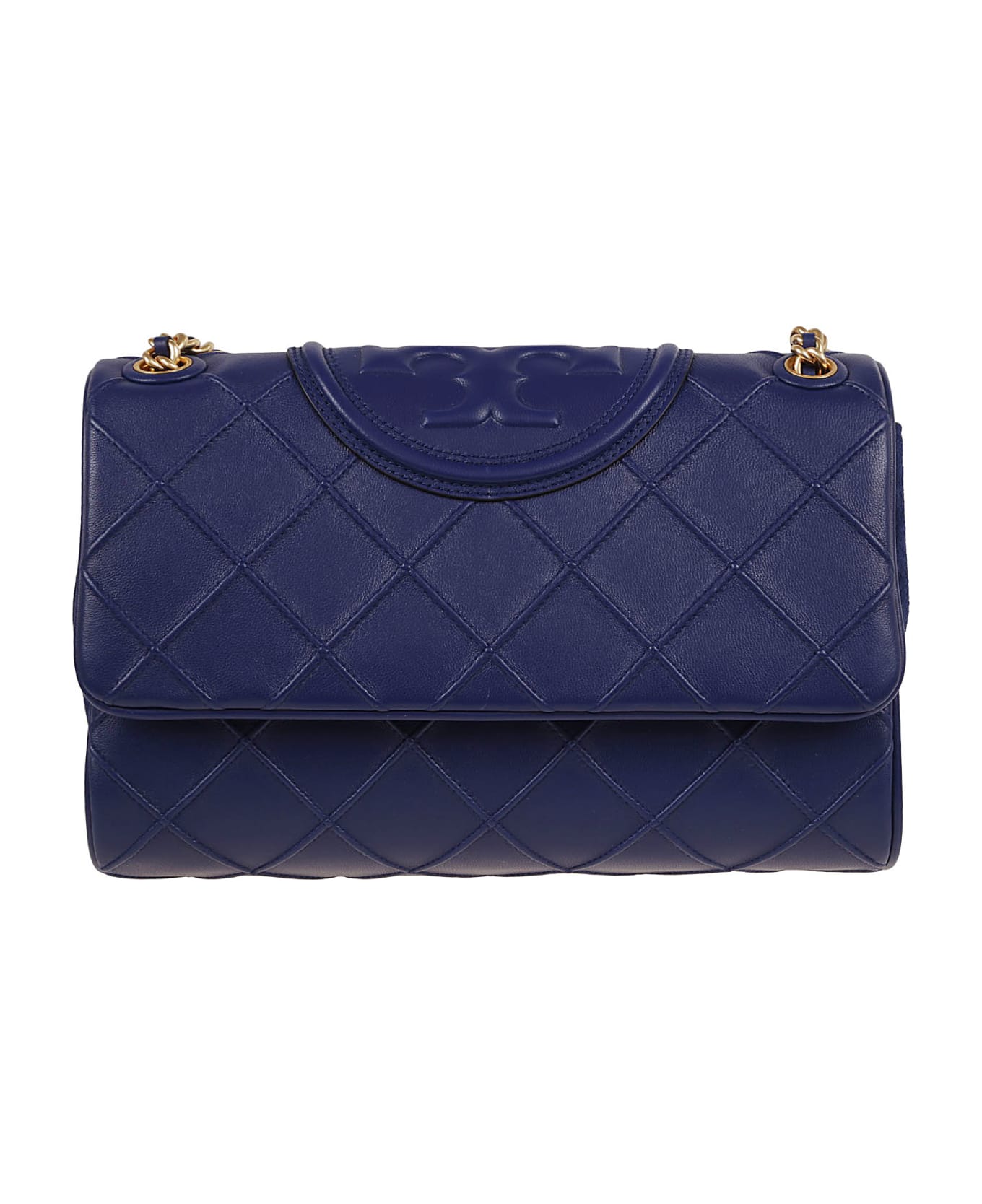New Fleming convertible shoulder bag in soft leather BY TORY BURCH. One internal welt pocket and one central internal compartment with zip; flap with magnetic closure. Featuring supple leather with diamond pleats; oversized bombé double T on the top. It can be worn both over the shoulder and on the shoulder, thanks to the shoulder straps with intertwined satin chain.