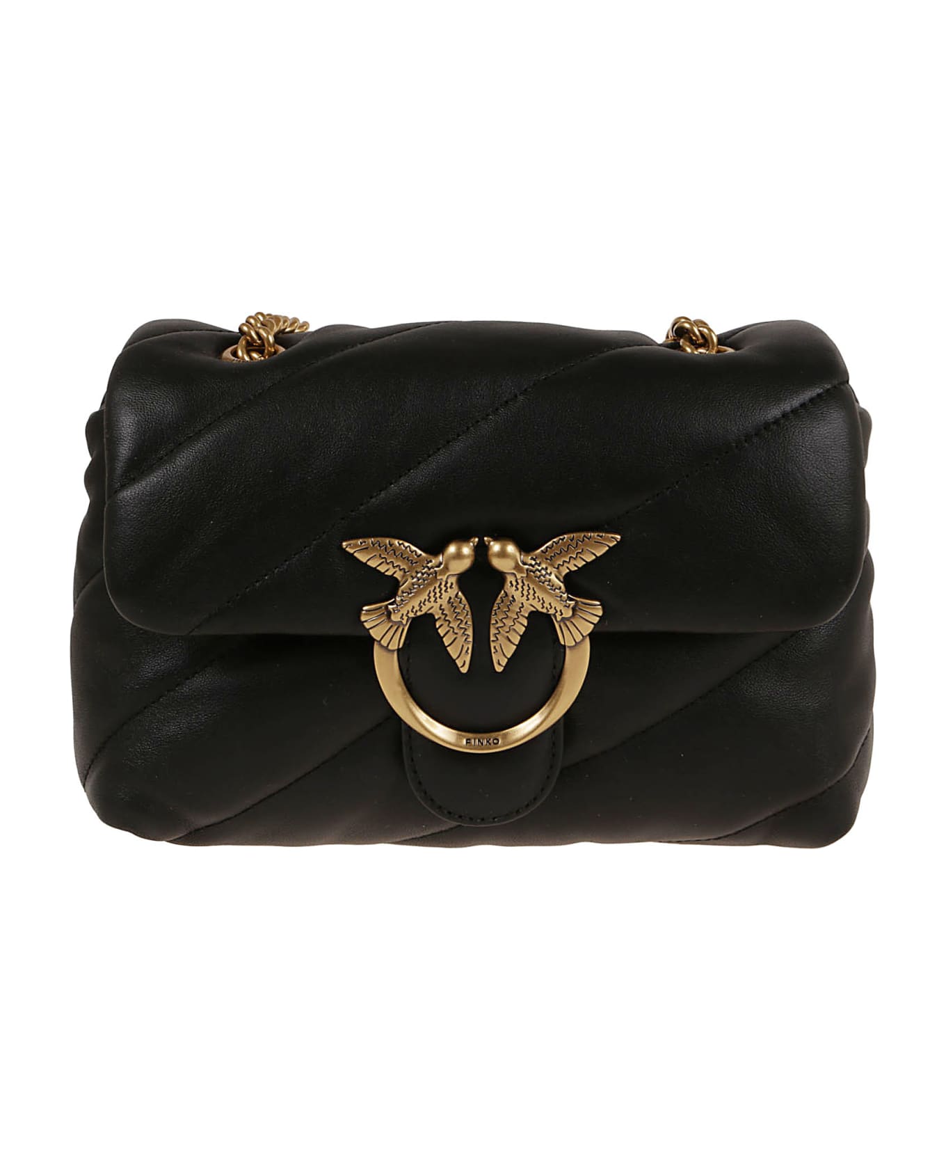 "Love Puff" shoulder bag by PINKO Made of calfskin, characterized by a quilted texture, Logo buckle detail, chain shoulder strap, interior zip pocket and interior slip pocket. A must of the brand, present in all the collections with the new colors!