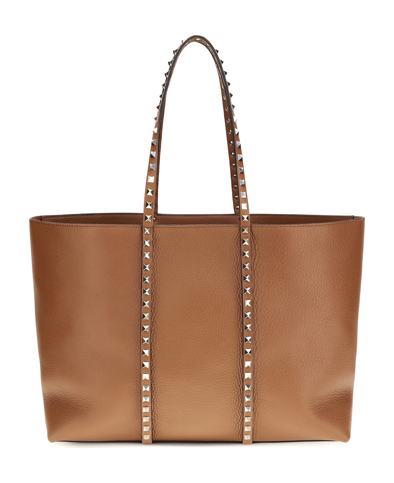 The rockstud tote bag by valentino garavani is crafted from garnet-colored calfskin and combines elegance with practicality. designed to be worn comfortably over the shoulder, it features studs and metallic details in a platinum finish, along with a zipper closure, for a sophisticated and distinctive look. Composition: 100% % Calf Leather Bos Taurus