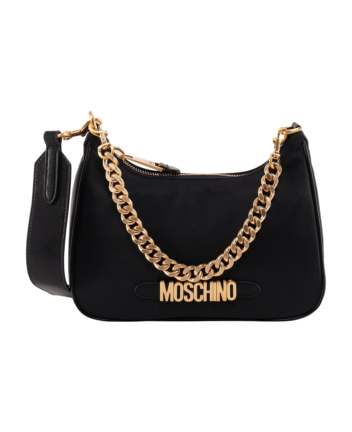 Nylon shoulder bag with metal logo