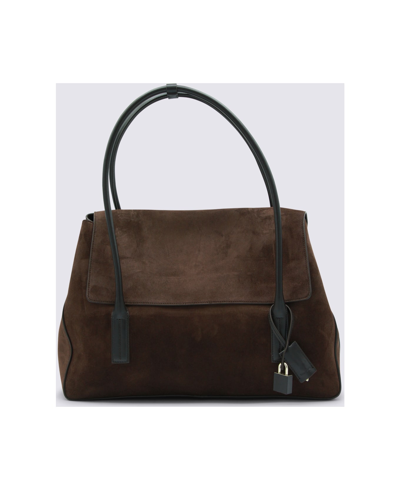Brown leather tote from Tom Ford featuring handles, suede, branded padlock charm, foldovertop with closure, main compartment and internal zip pockets. Composition: 100% Le