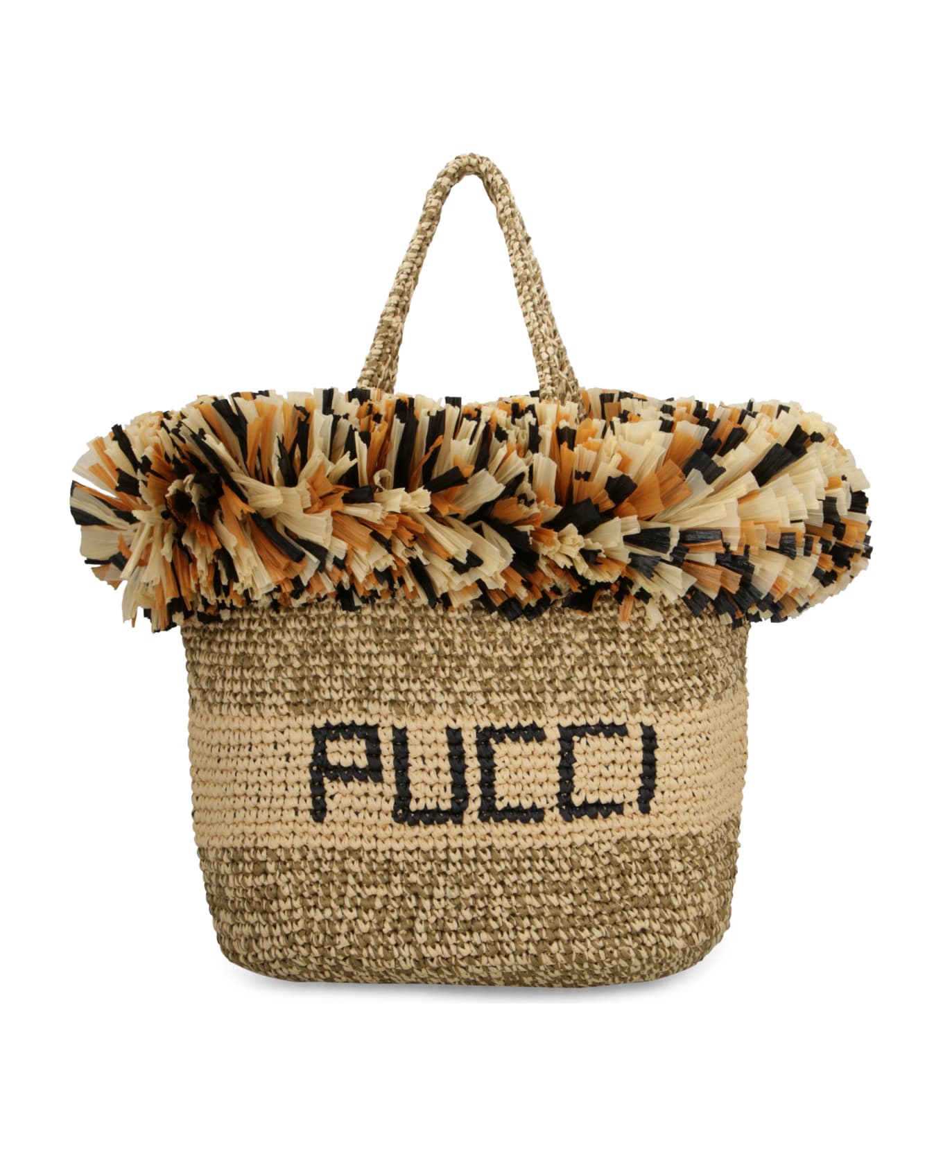 Front logo detail one open compartment two handles unlined item width: 40 cm height: 35 cm depth: 17 cm 100% viscose, 100% raffia Composition: 100% % Viscose, 100% % Raffia