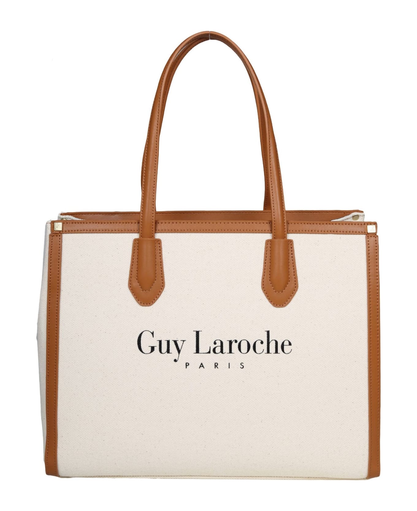 Shopping bag in canvas and calfskin natural color and leather zip closure double leather handles lined interior zip closure two internal welt pockets front logo adjustable and removable fabric shoulder strap composition : canvas and leather measures: width 38cm height 30cm depth 11cm made in china