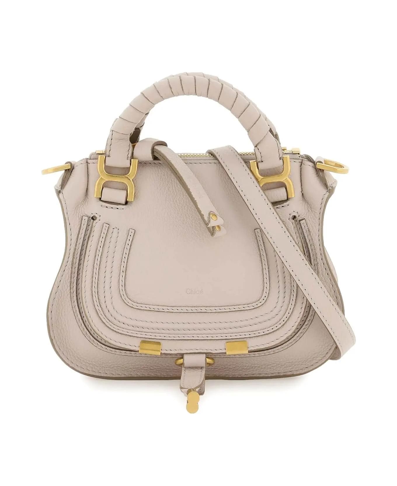Chlo grained leather 'Marcie' handbag with front pocket decorated with tassels, zippered main compartment and lined interior with a credit card slot. Double hand-woven leather handles, adjustable and detachable shoulder strap and gold-finished metalware.
