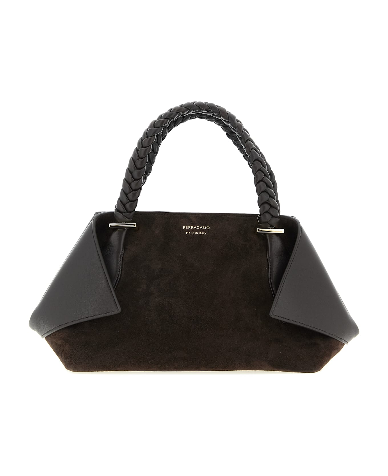 'Scarf TH S' handbag in suede and tone-on-tone smooth leather, front embossed logo, side-folded corners, double padded and woven handle, metal details, upper inner zip closure, rigid base with metal feet, adjustable and removable shoulder strap.