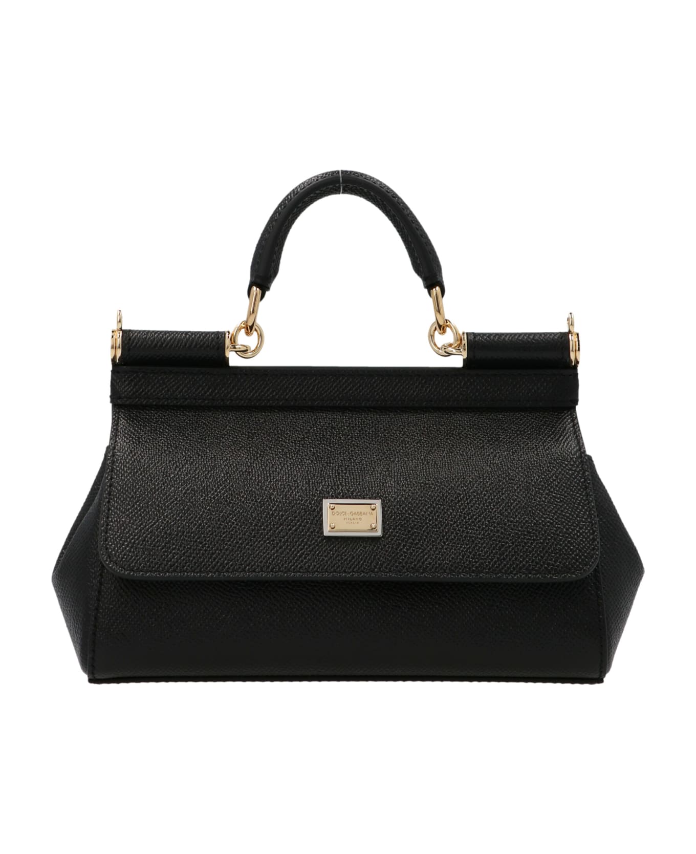 'Sicily' small dauphine leather handbag with logo plate on flap closure, fixed handle and removable shoulder strap. Composition: 100% calf leather