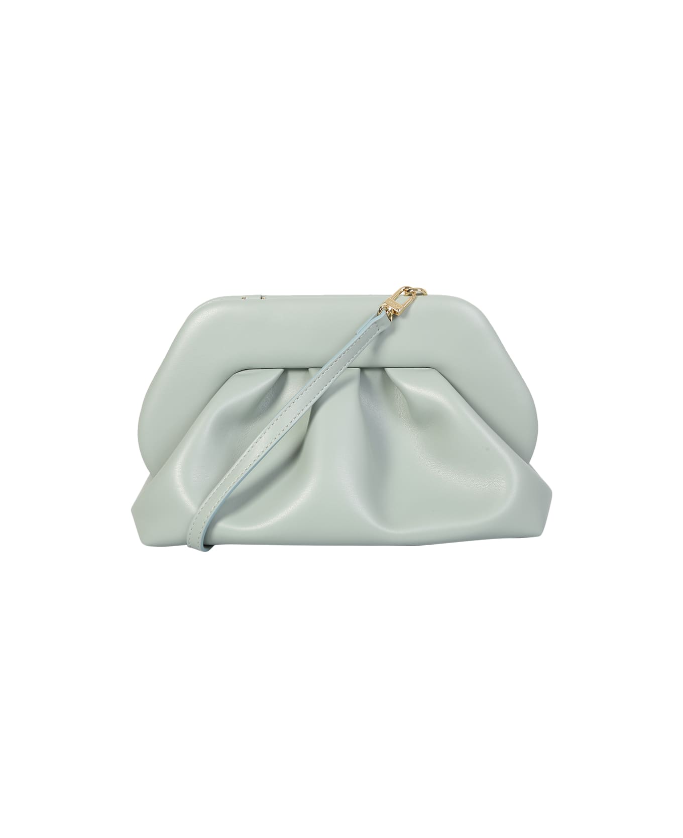 Top magnetic fastening. Main compartment. Internl logo tag. Clutch design. Detachable adjustable shoulder strap. Color: light blue