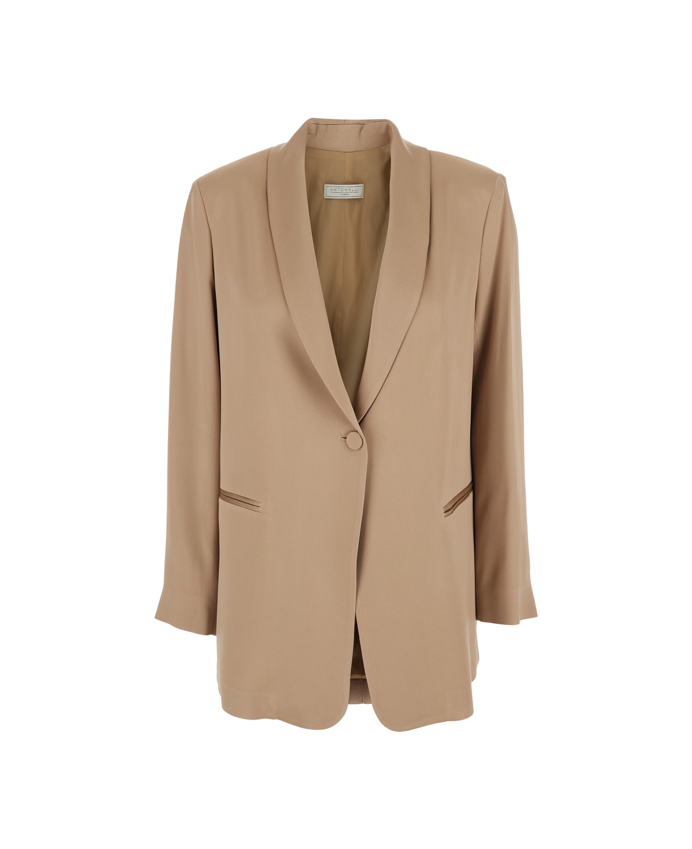 'edward' Beige Jacket Single-breasted With Shawl Lapels In Tech Fabric Women