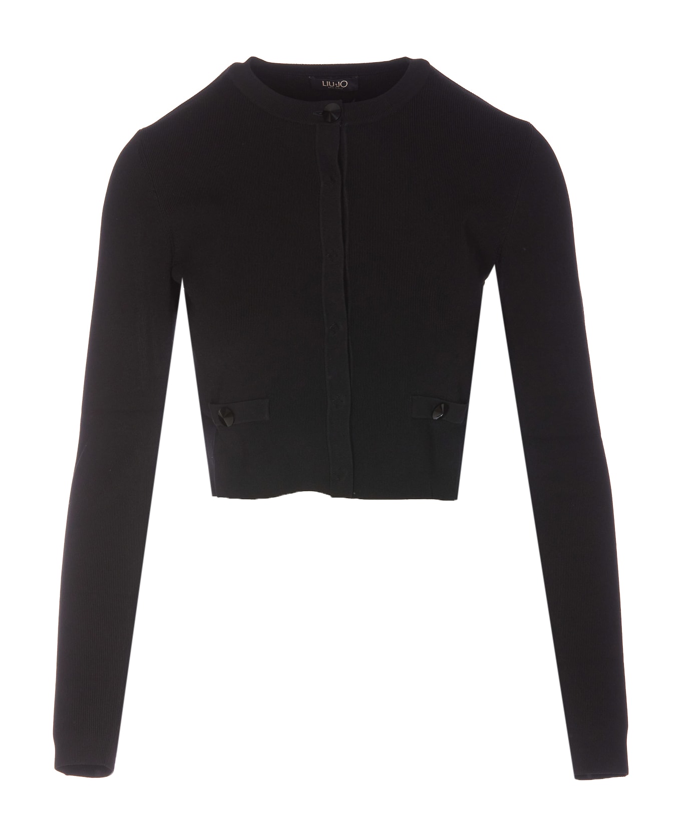 Liu Jo black jacket, round neck, long sleeves, frontal buttons, frontal tone on tone crystal detail Composition: 83% Viscose, 17% Polyester