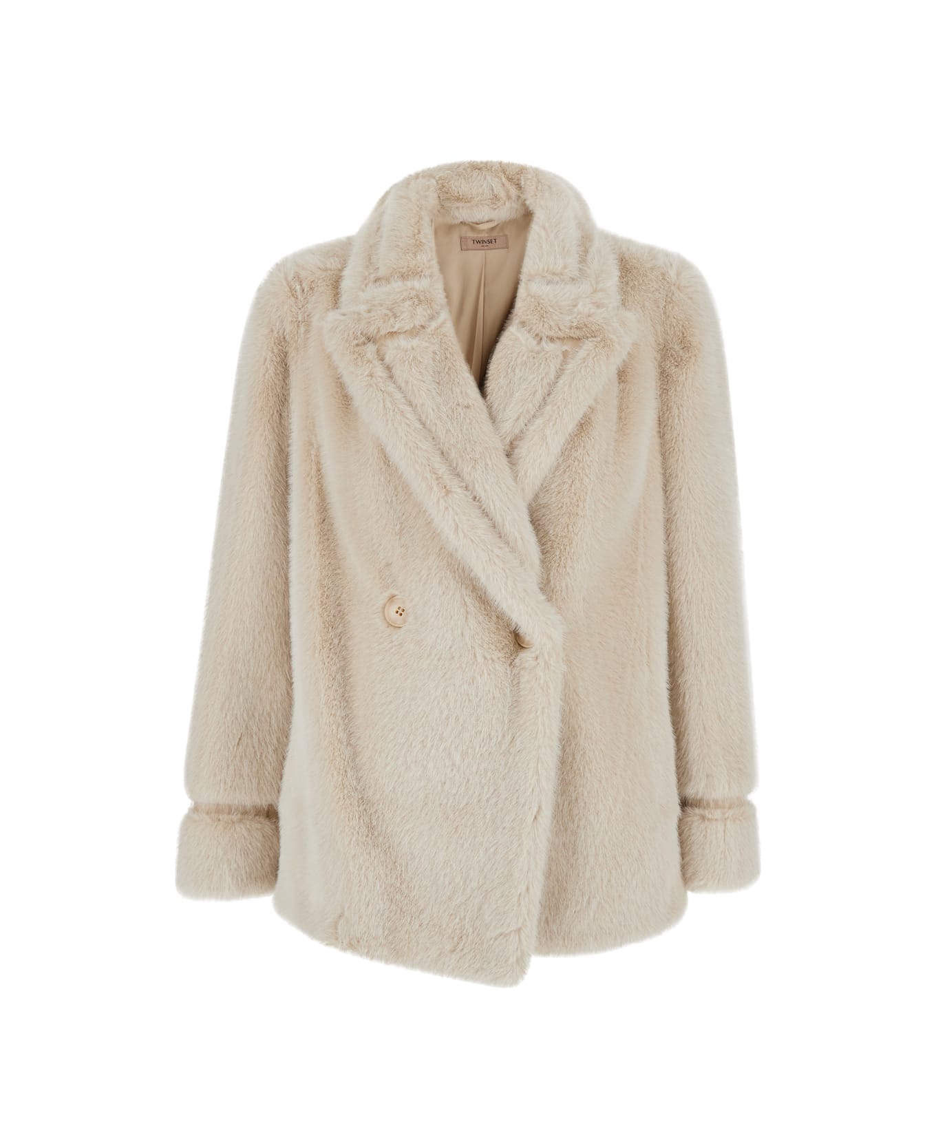 Coat White Double-breasted Peak revers Long sleeves Front button closure Straight hem Ecofur Regular fit