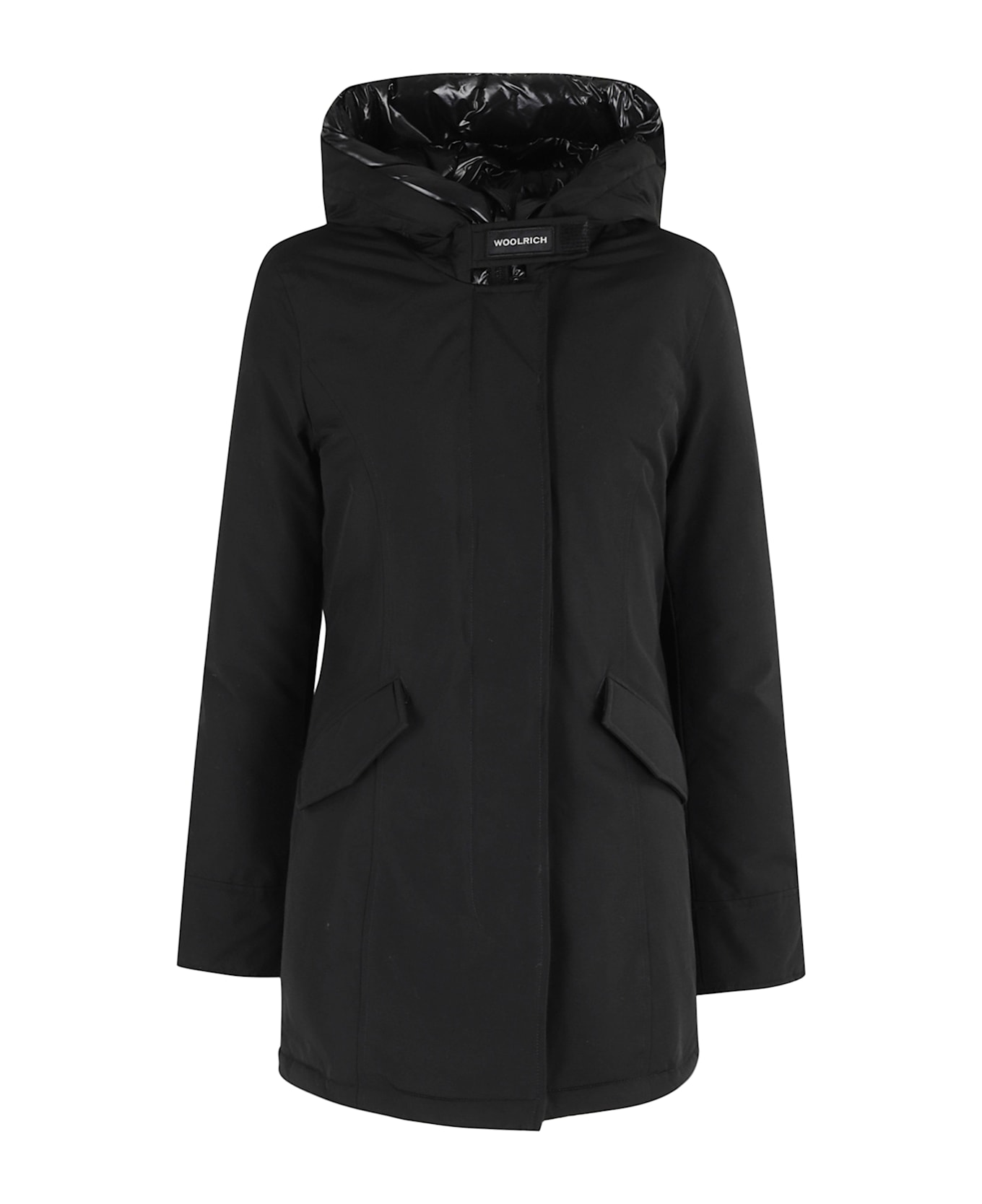Artic Parka jacket -Woolrich -Black color -Long sleeve -Central button and zipper closure -Side pockets -Cap