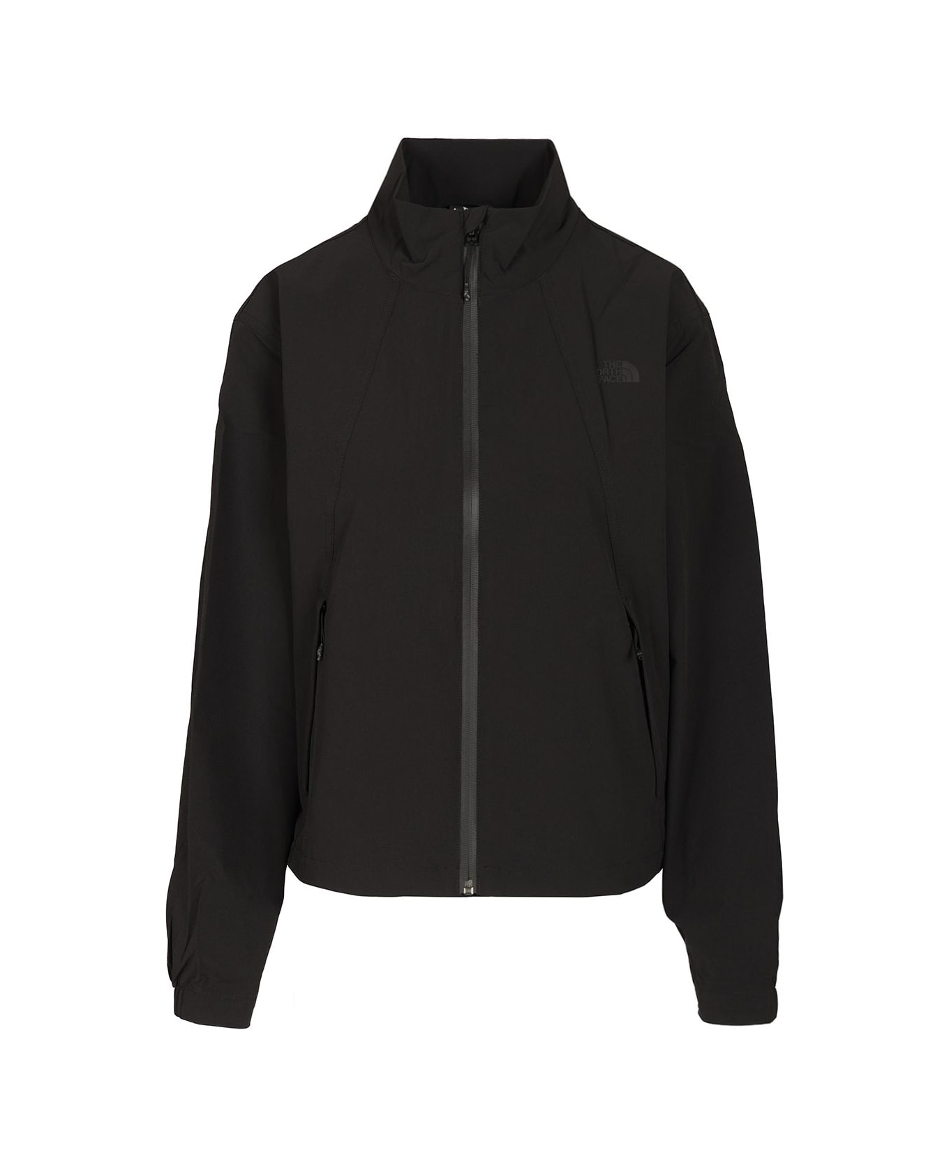 The North Face "North Dome" windbreaker jacket featuring a relaxed fit and made from wind-resistant WindWall fabric. It features a stand-up collar, a full-length centre front zip, zipped side pockets, partially lined elasticated cuffs, an internal drawcord hem with toggle and a logo to the left chest. The jacket can be folded into its own back pocket.