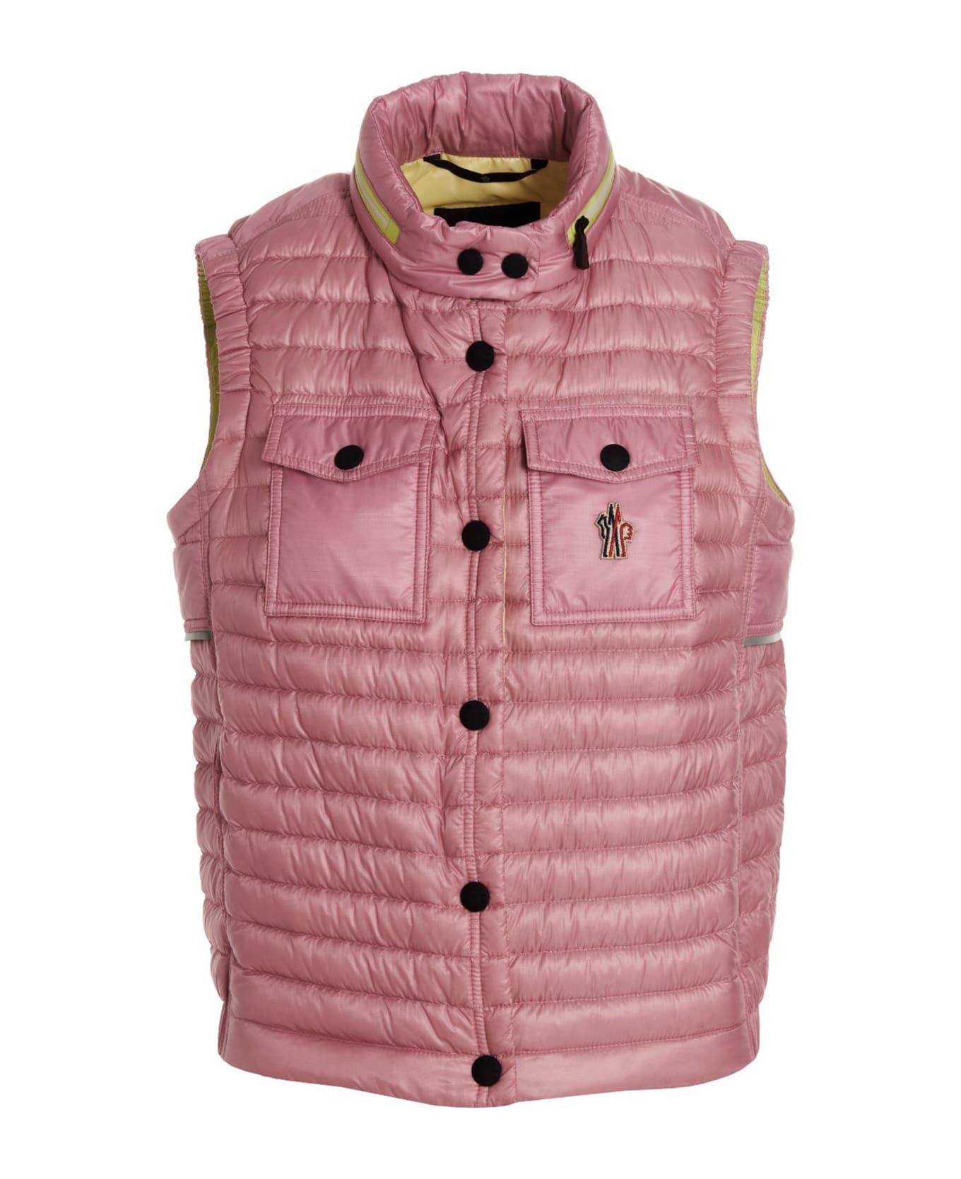 'Gumiane' nylon vest with feather padding, zip and button closure, pockets, front logo patch, high neck with packable hood and reflective details. Composition: