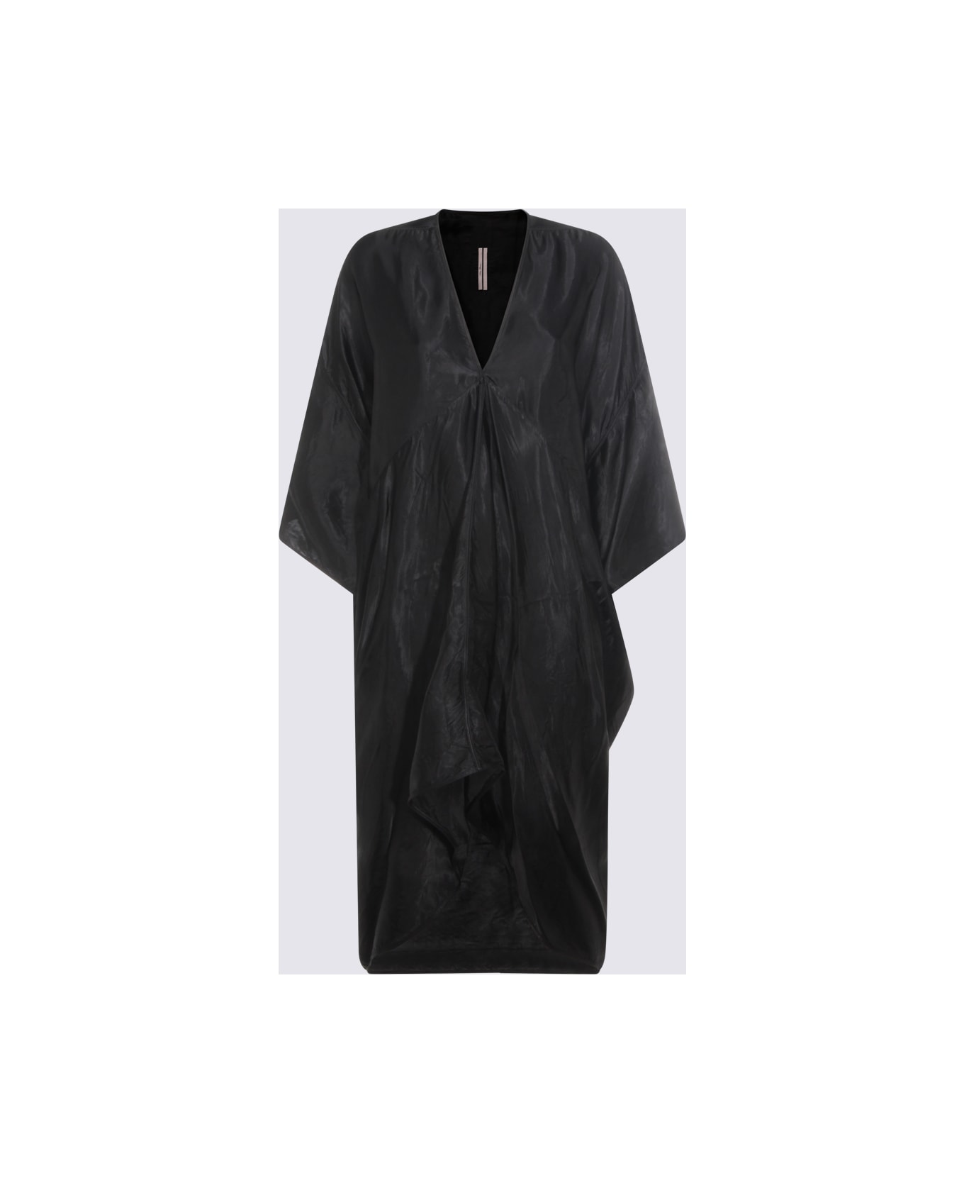 Black dress from Rick Owens featuring V-neck, long sleeves, all over length and oversize vestibility. Composition: _, 100% Cupro