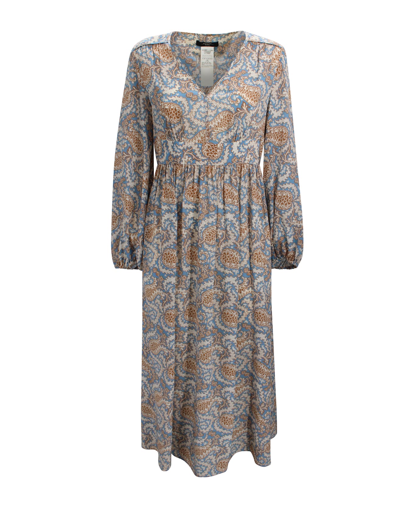 Features Fabric: pure silk crêpe de Chine Regular fit All-over print V-neck Long puff sleeves with elastic cuffs Gathered waist seam Side zip fastening Unlined