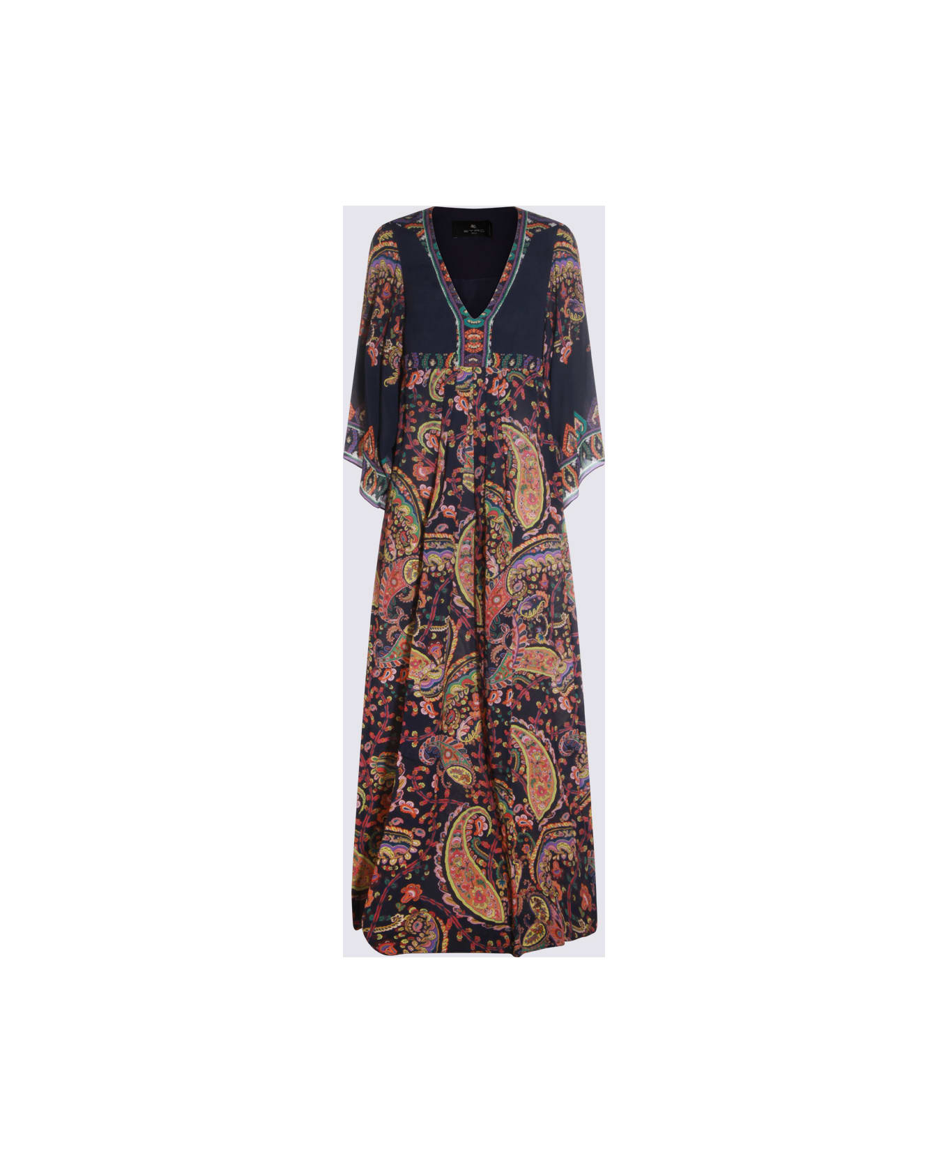 Multicolor viscose dress from Etro featuring v neckline, midi wide sleeves, Etro texture, soft vestibility and long lenght. Composition: _, 100% Viscose