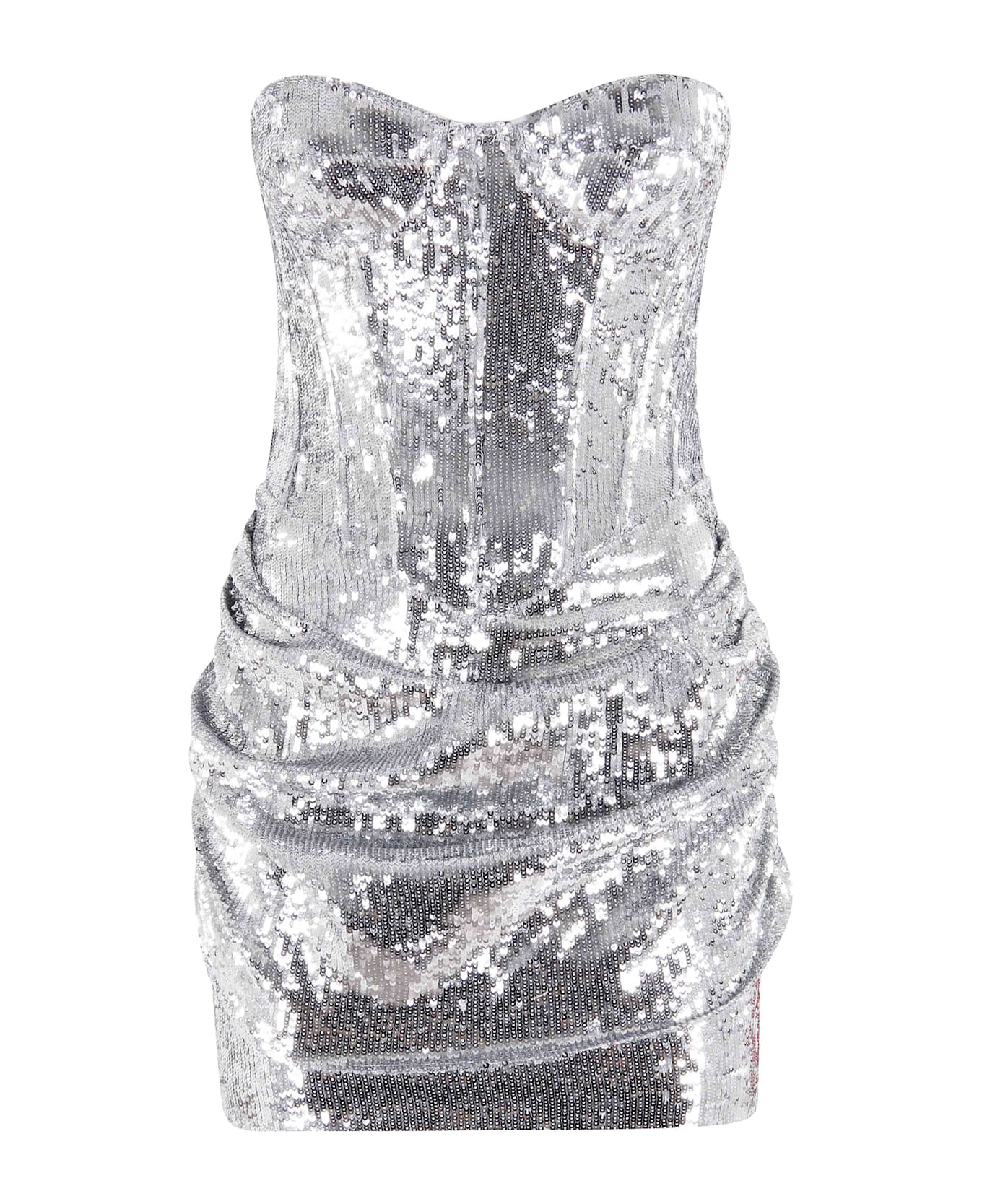 Pamela In Mysticum Dress - The New Arrivals Ilkyaz Ozel - silver color - all-over sequins - sweetheart neckline - back zipper closure - draped waist - above-the-knee length