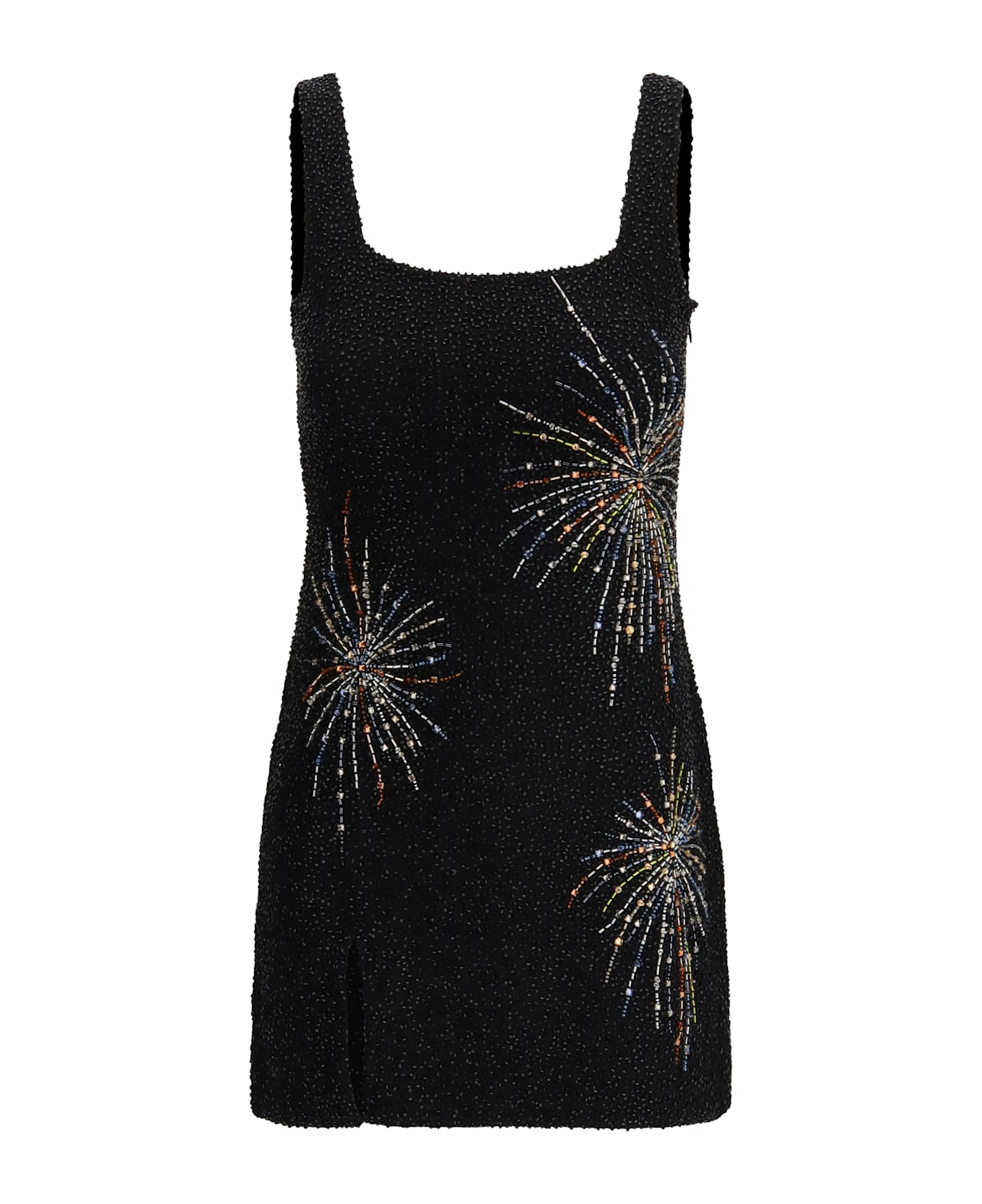 The sable dress firework by staud reimagines the brand s signature beaded mini dress with a radiant firework-inspired pattern that brings light and movement to the silhouette. its subtle stretch ensures a comfortable fit, while the concealed side zipper keeps the profile smooth and refined. a standout dress designed to elevate festive moments with staud s signature sparkling elegance.