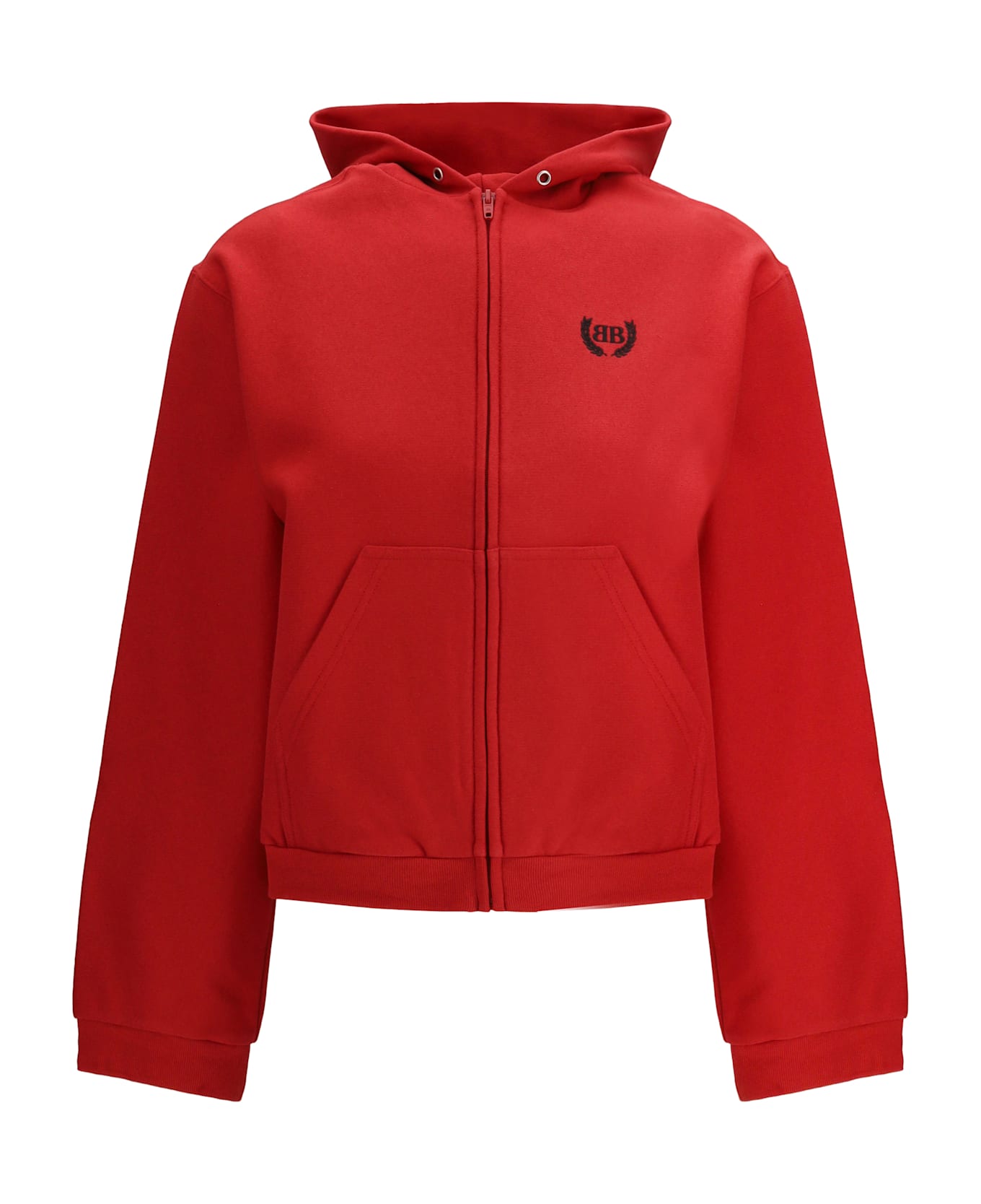 The laurel classic zip-up hoodie by balenciaga conveys a refined sporty attitude through a compact dry-fleece construction. the hood without drawstring and the zip fastening shape a clean design, while soft shoulders and a more fitted structure at the cuffs and hem balance the silhouette. front pockets add practicality, finished with the laurel classic embroidery on the front as a distinctive signature.
