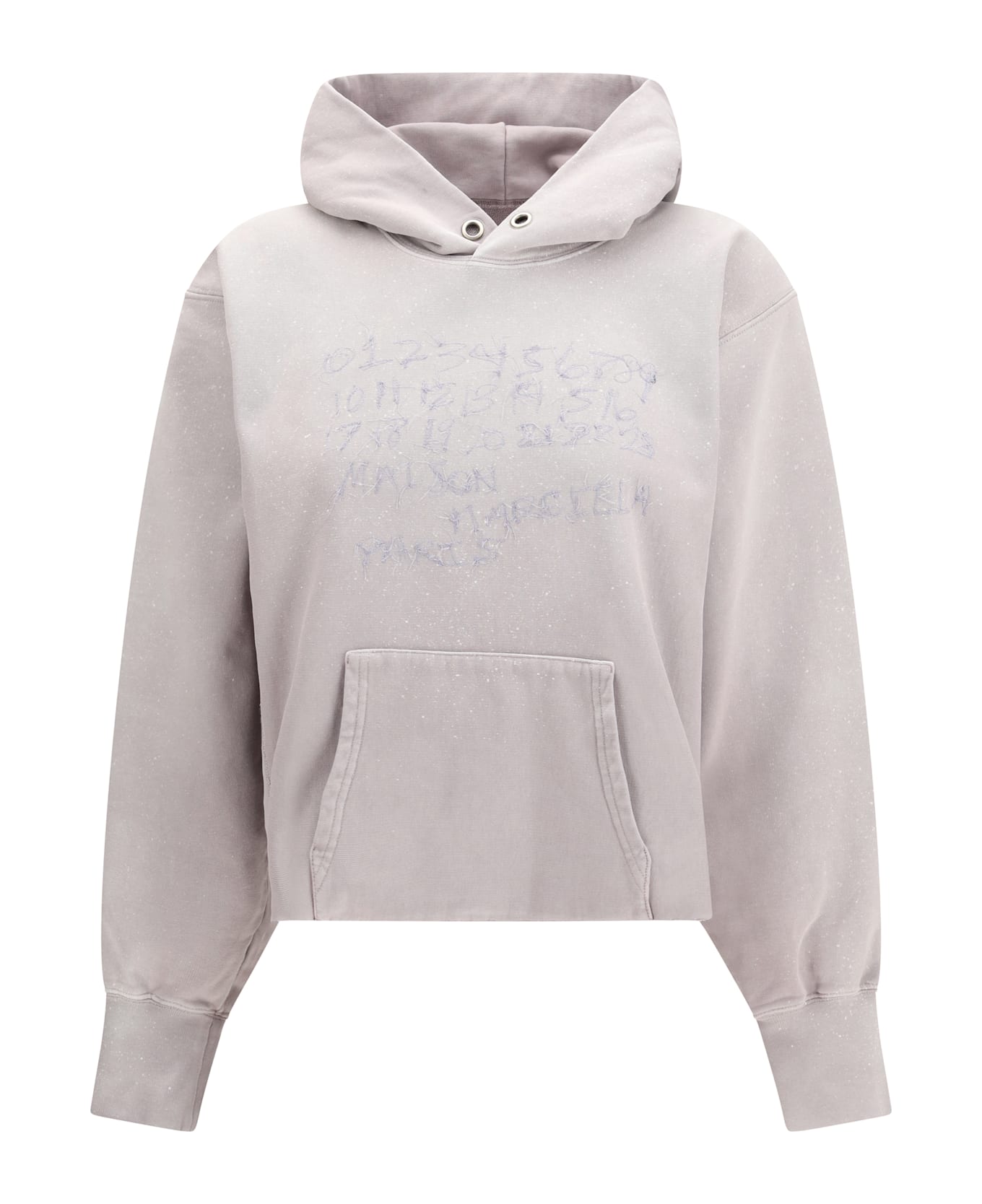 The printed hoodie with adjustable drawstring hood and kangaroo pocket by maison margiela expresses an essential aesthetic with contemporary accents. the graphic print enhances the design with a distinctive visual statement, while the raw-cut hem highlights its deconstructed attitude. comfortable construction and balanced proportions make this sweatshirt by maison margiela a versatile piece with refined urban character.