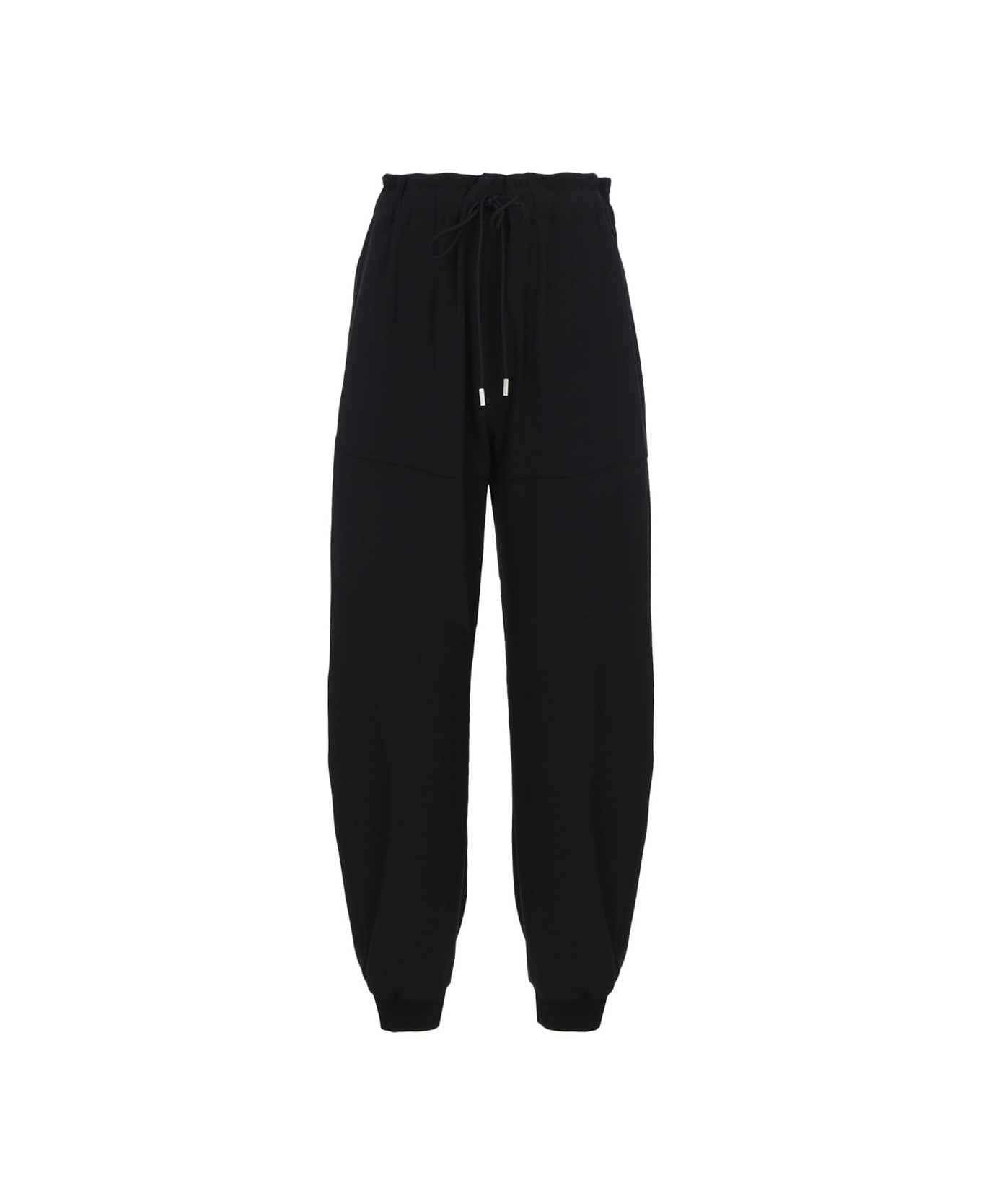 Chloé's jogger pants combine comfort and sophistication in a casual-inspired garment with feminine flair. made from a soft, flowing fabric, they feature an elasticized waistband with an adjustable drawstring for a comfortable, customized fit. the two welt pockets on the front add a functional touch while maintaining a clean, essential silhouette.