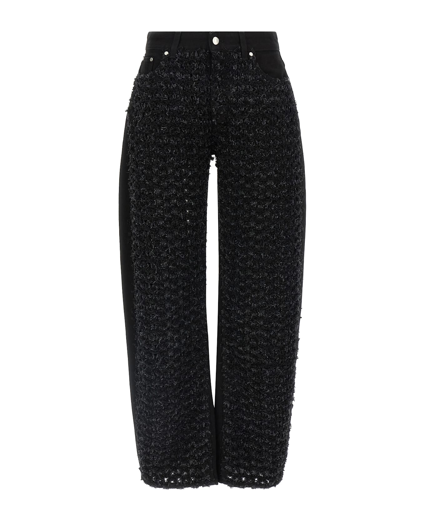 Cotton denim jeans with front part worked in laser bouclé I do not see, medium waist, wide and straight leg, zip and front button closure, five pockets, back logo tag. Composition: 100% cotton
