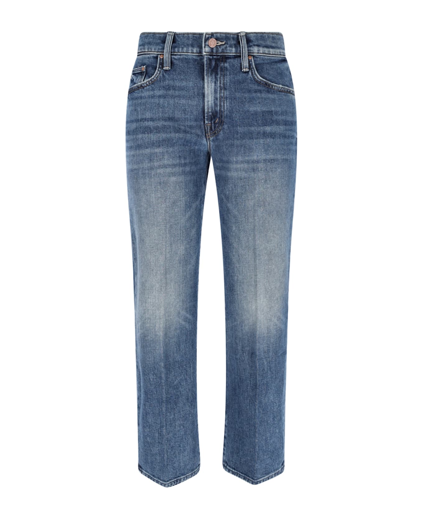 Mother straight jeans in stretch cotton denim with mid waist, button and zip closure, belt loops, five pockets, embroidered back pockets, straight leg. Composition: 97% Cotton, 2% Polyester