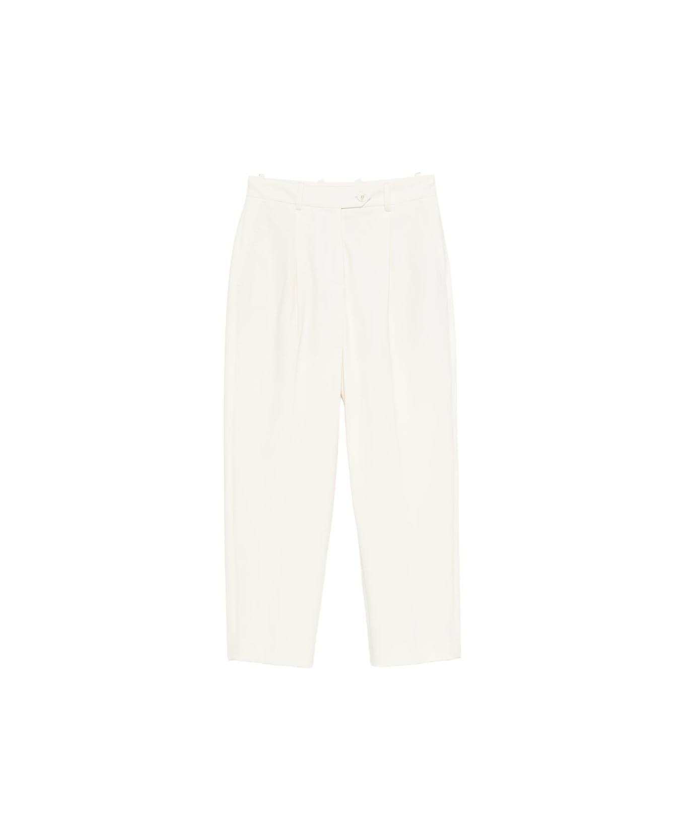 cream pleats belt loops button fastening front crease rear welt-pockets