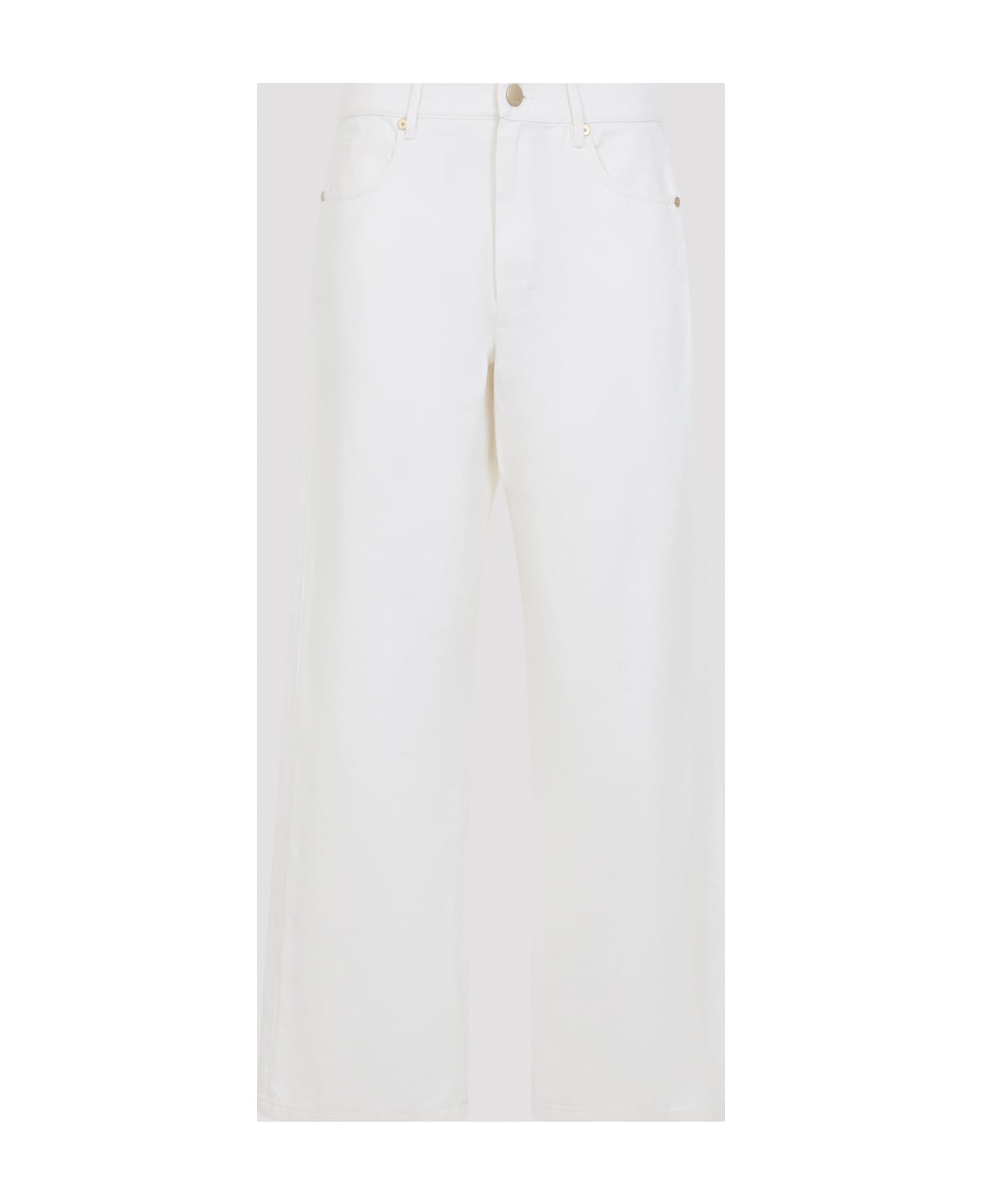 Max Mara`s Onorata White Cotton and Linen Pants. Crafted from white cotton and linen, featuring belt loops, front button and zip fly, a slightly cropped length, and a wide leg.