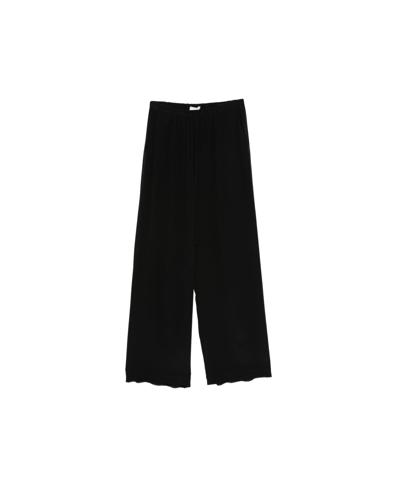 black silk drawstring fastening wide leg elasticated waistband slip pockets