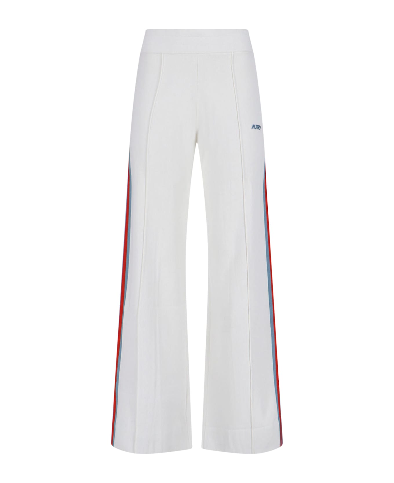 Autry sports pants in white viscose blend, mid-rise elastic waistband, contrasting logo on the side, contrasting side details, wide leg. Composition: 65% Viscose, 35% Nylon