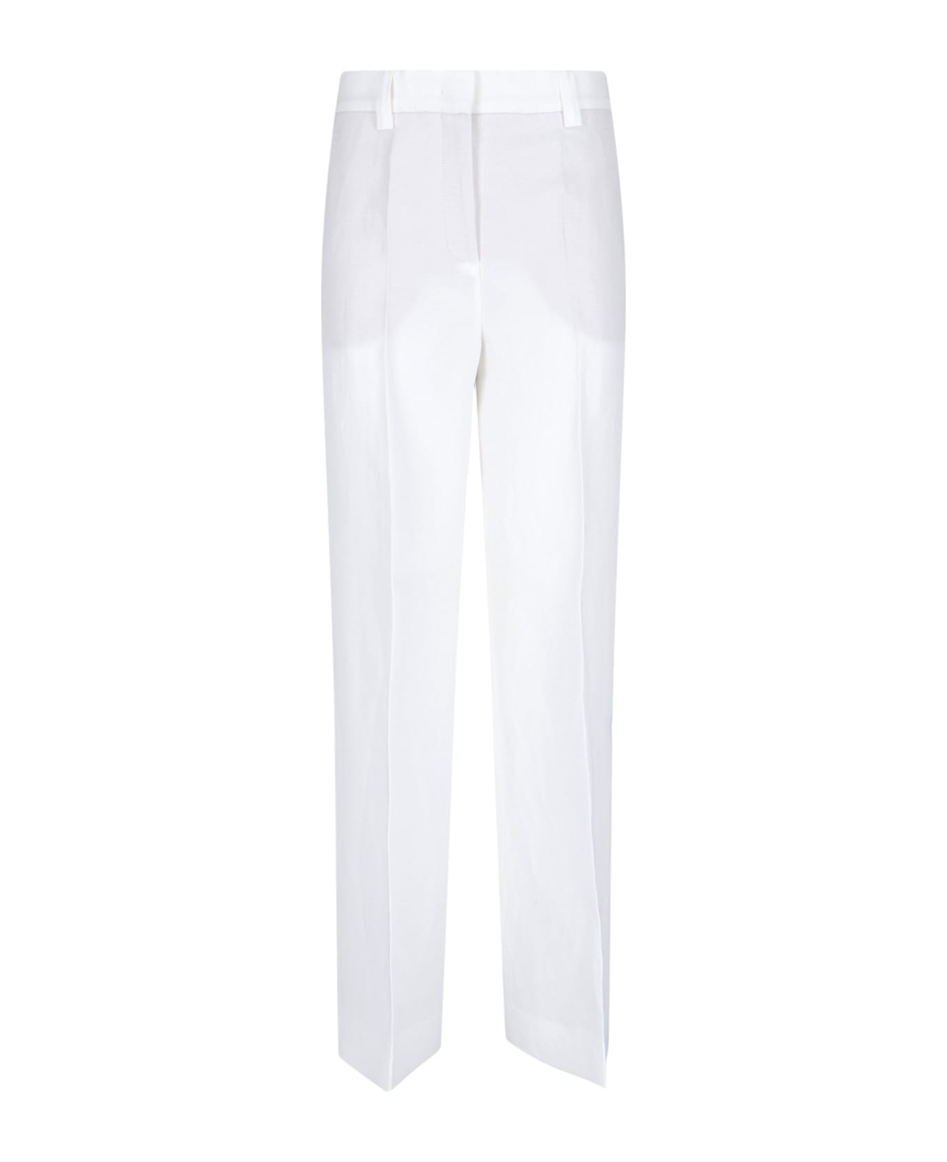 Incotex straight pants in white linen blend with high waist, belt loops, hook and zip closure, two side pockets, two back button welt pockets, wide leg. Composition: 56% Lyocell, 44% Linen