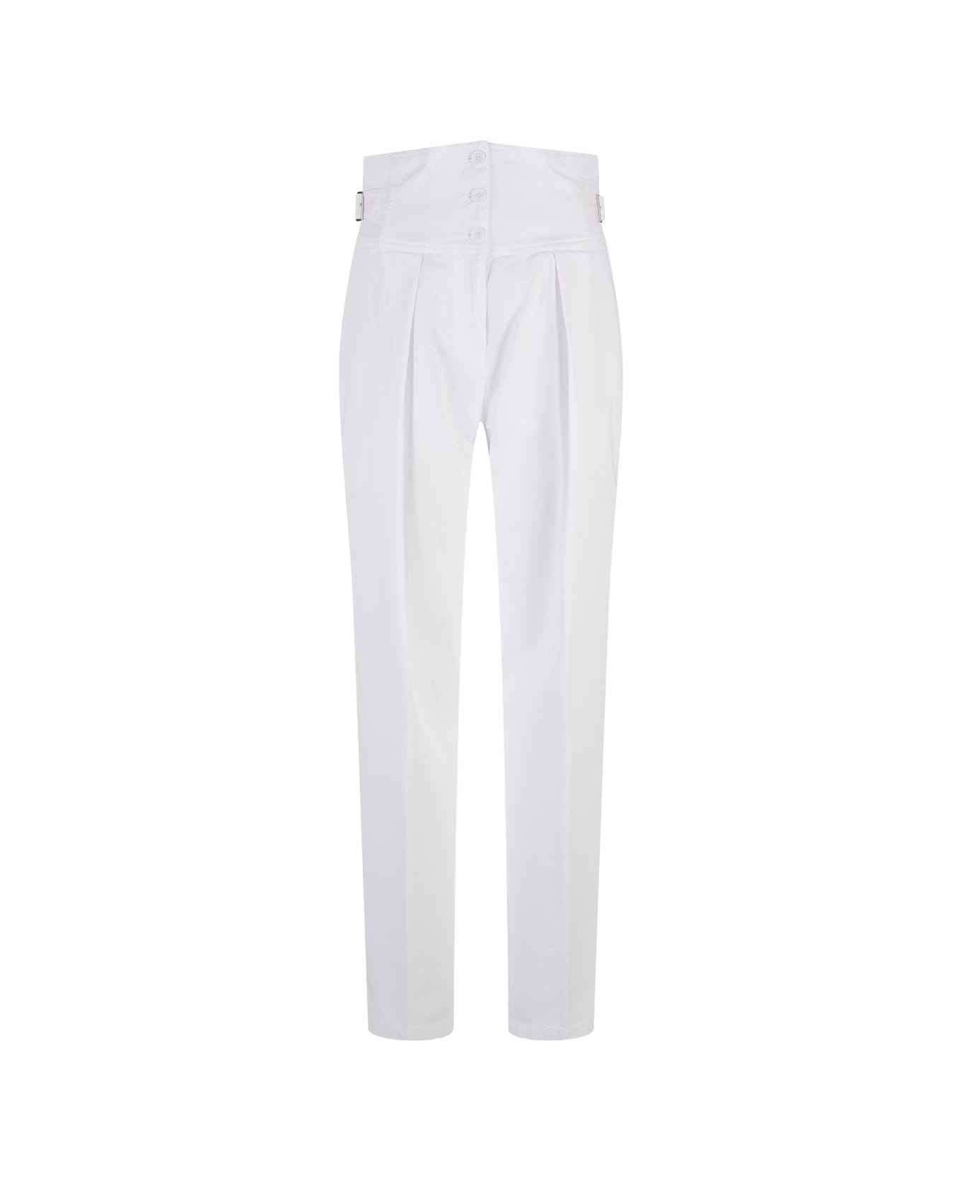 High-waisted carrot fit trousers by Aspesi made of white cotton and featuring darts, side buckles, zip and three-button fastening, two side pockets and two patch pockets on the back.