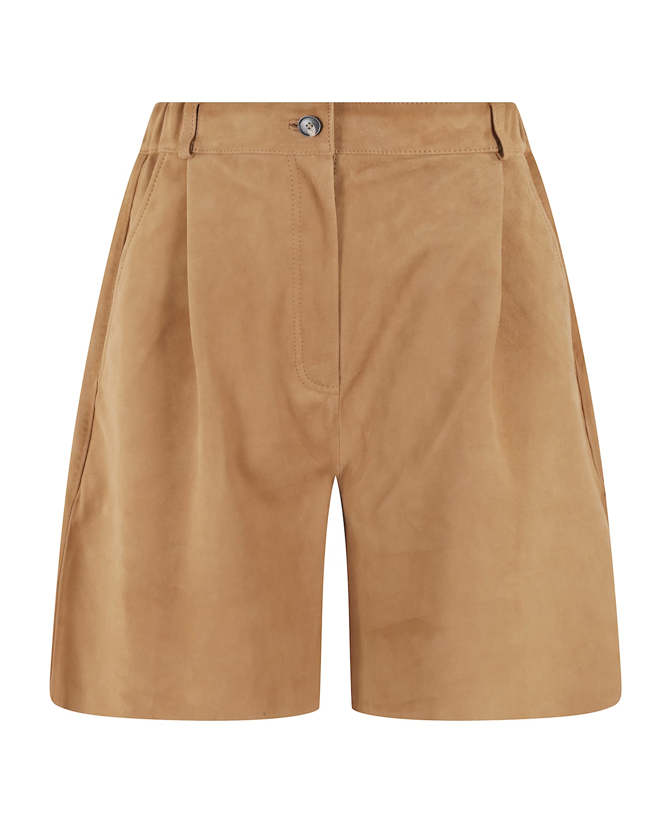 Mulino Bermuda Shorts - Canvas - Camel color - Suede fabric - High waist with belt loops - Wide leg with pleats - Side French pockets - Front button and zipper closure - Regular fit