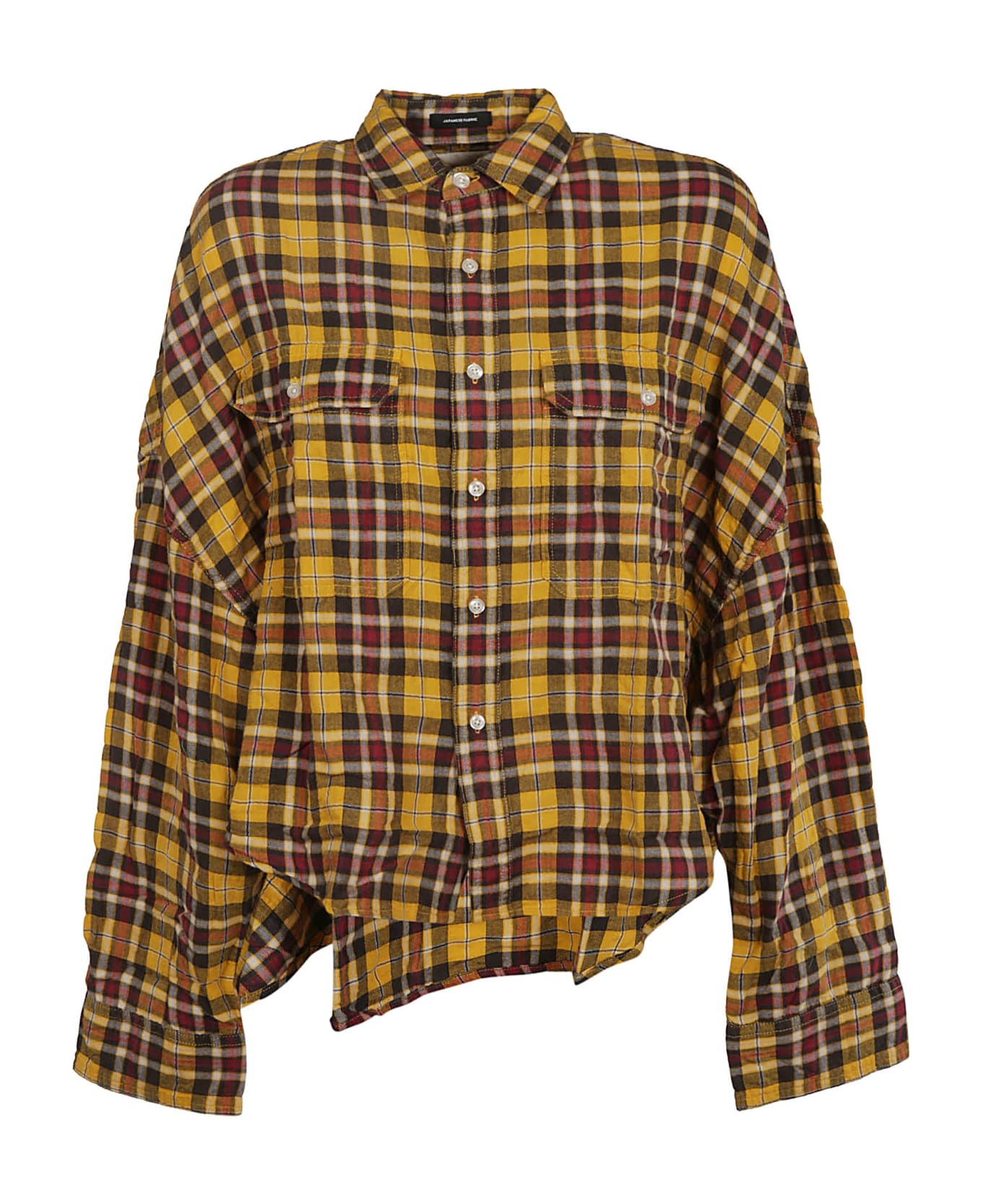 Cropped Plaid Shirt from R13: Yellow Cropped Plaid Shirt with classic collar, front button closure, all-over check design, long sleeves, two front buttoned pockets and loose fit