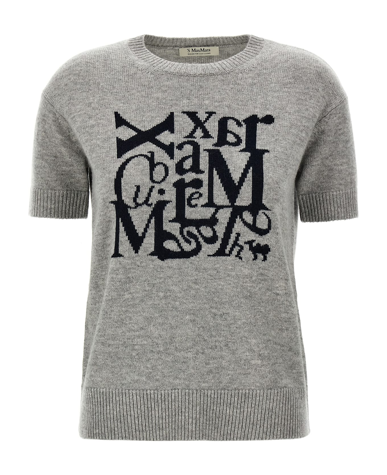 'Felicia' cashmere blend sweater with front logo intarsia, crew neck, short sleeves. Composition: 80% wool 20% cashmere