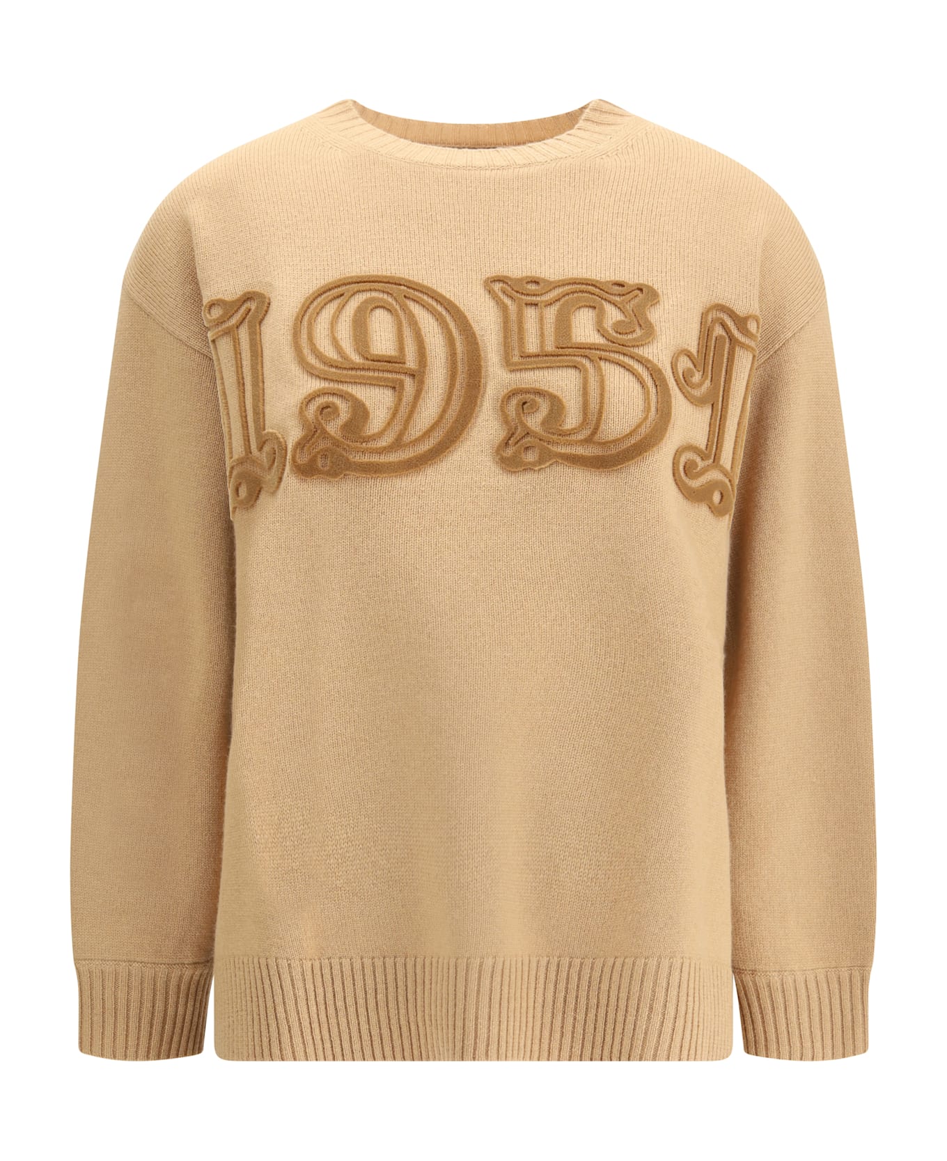 The fido sweater by max mara is an iconic piece celebrating the timeless elegance of the maison. crafted from a soft wool and cashmere yarn, it is adorned with a 1951 embroidery at the front center, symbolizing the brand s heritage and identity. the oversized fit, crew neck, and long dropped-shoulder sleeves ensure comfort and style, while ribbed trims complete the design with a classic touch.