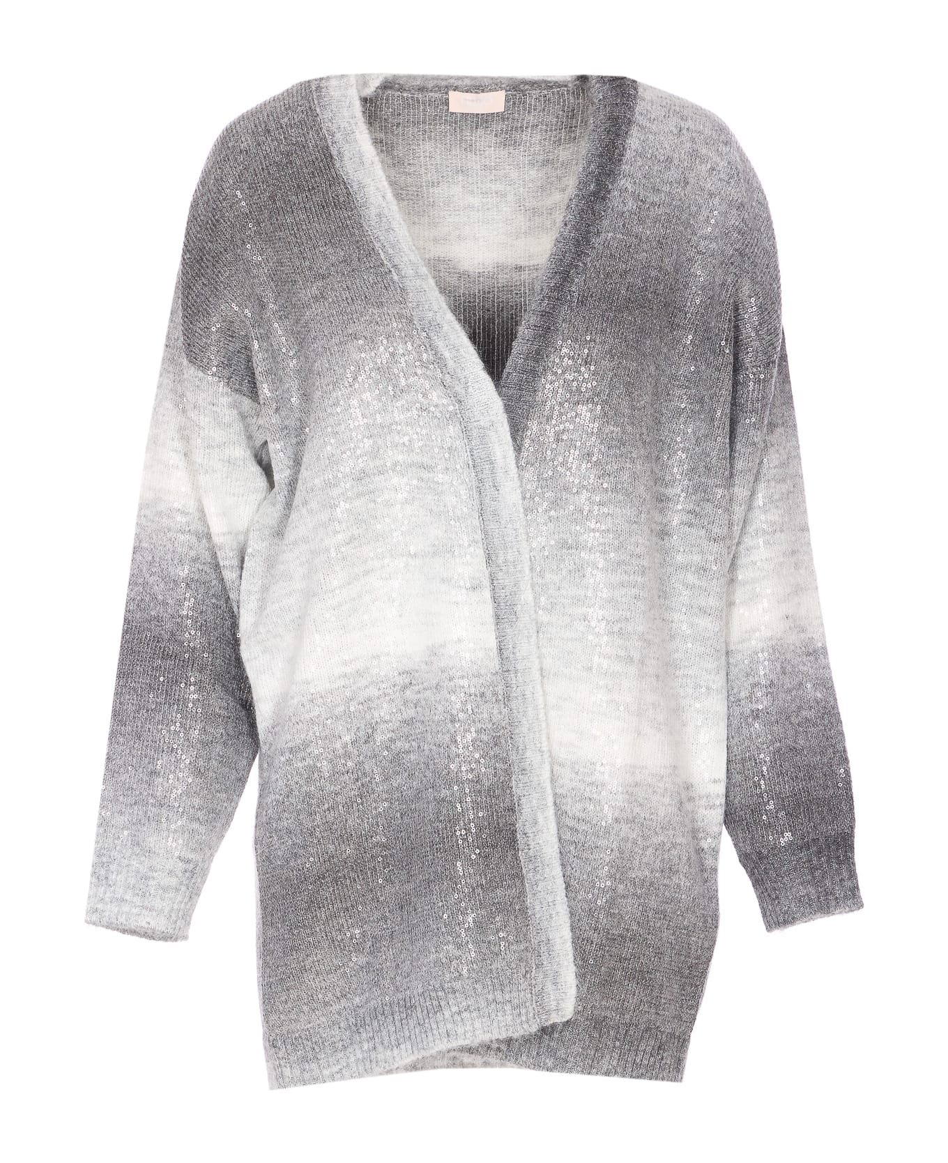 Liu Jo grey sequins cardigan, long sleeves, open silhouette Composition: 64% Polyester, 28% Acrylic, 8% Wool, 100% Polyester